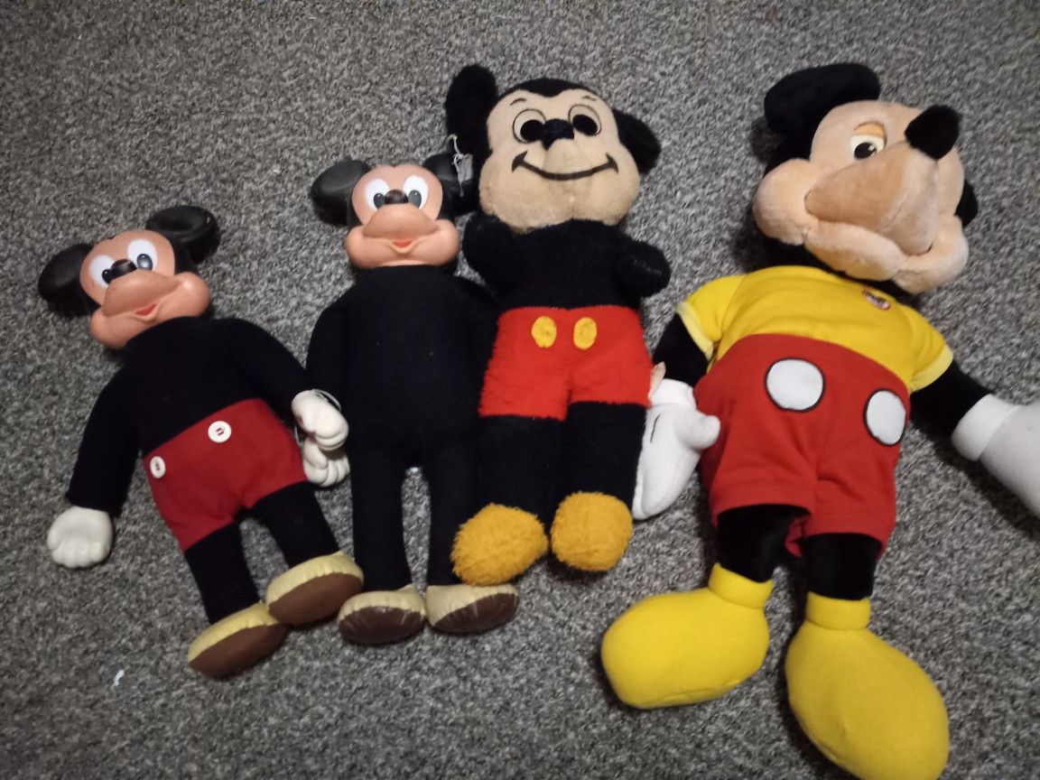 Get all 4 for 1 price!!! Vintage mickey Mouse with matching Minnie Mouse Vintage set plastic face with original body Plush Vintage mickey Mouse Large stuffed Vintage mickey Mouse