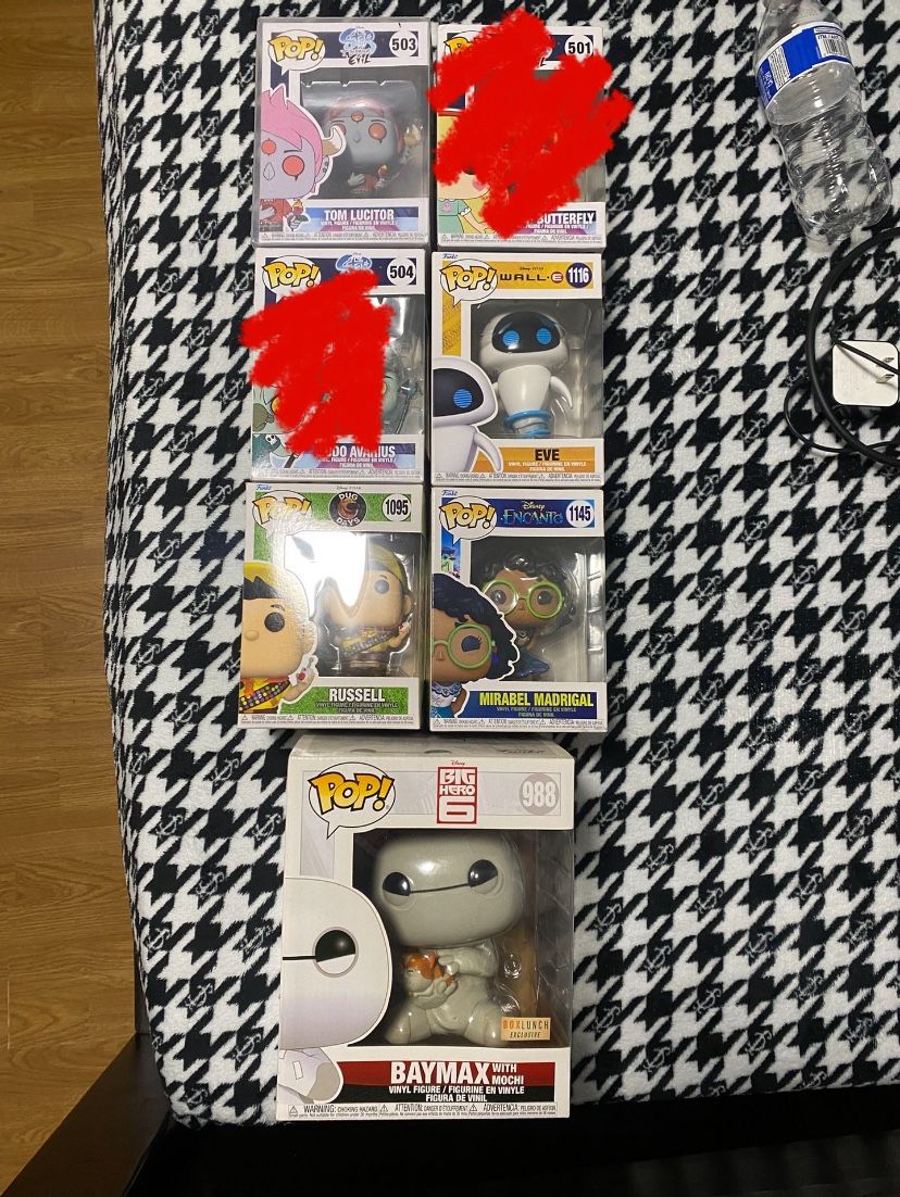 All of the pops are in mint condition and have not been opened once. Slight dust on top that can be whipped away. Not looking for huge deals I just want to get rid of them