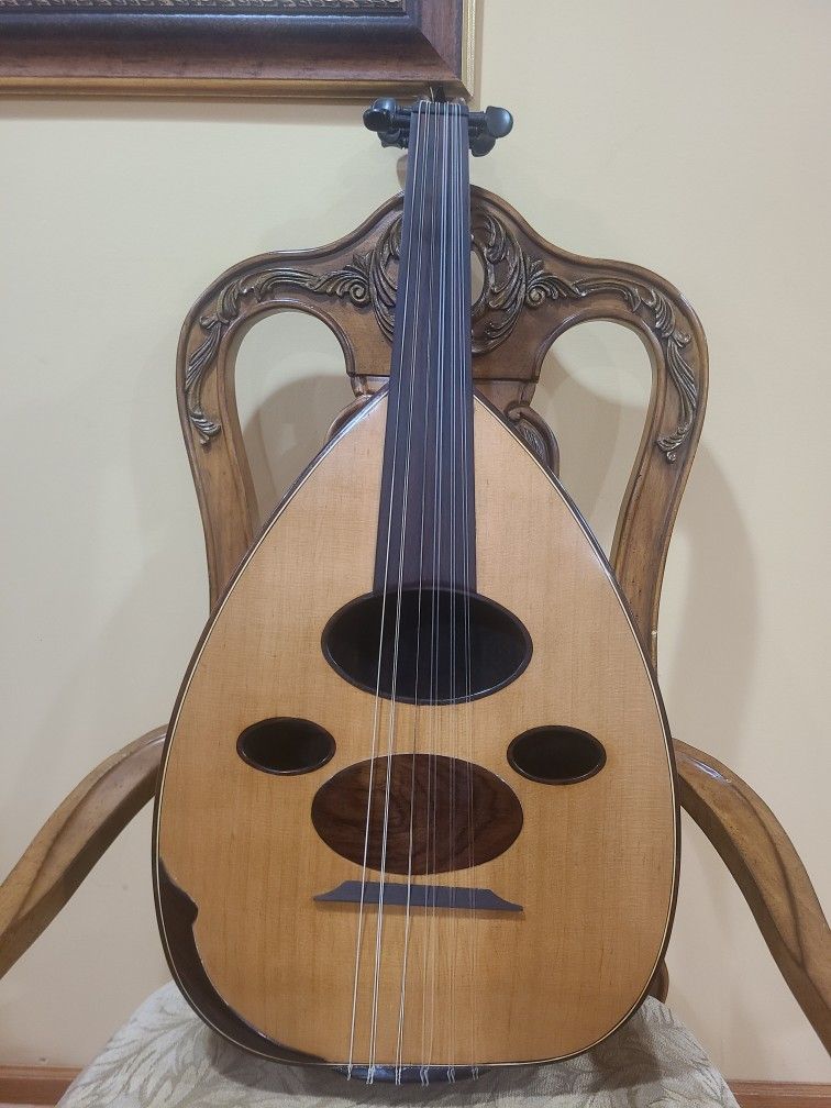 A Proffesional Iraqi oud instrument was made in 2019 by Laith Fouad jihad . The top is made with cedar wood, and the back is rosewood . I paid more than what the listing price is.. عود إحترافي عراقي من صناعة الأستاذ ليث فؤاد جهاد سنة 2019، وهوه من اهم صناع العود في العراق. وجه العود من خشب السيدار والظهر من خشب السيسم الهندي. السعر عند الشراء كان أكثر من سعر العرض حاليا