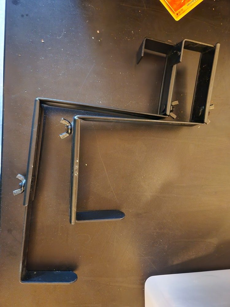 Fully adjustable brackets to support window box long planters. They adjust to fit both the width of the planter and the width of the railing. They've never been used.