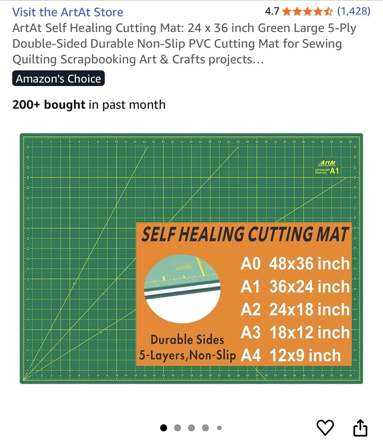 ArtAt Self Healing Cutting Mat: 24 x 36 inch Green Large 5-Ply Double-Sided Durable Non-Slip PVC Cutting Mat for Sewing Quilting Scrapbooking Art & Crafts projects… Brand new Near 175 ave and greenway