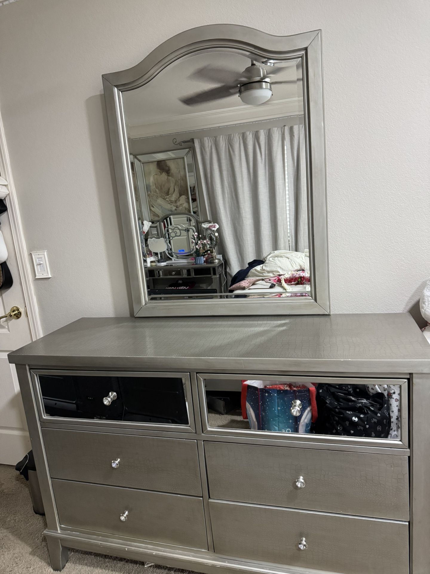 Comes with 1 dresser 1 nightstand Headboard Vanity Long jewelry box I’m moving and looking for something new if you have any questions message me