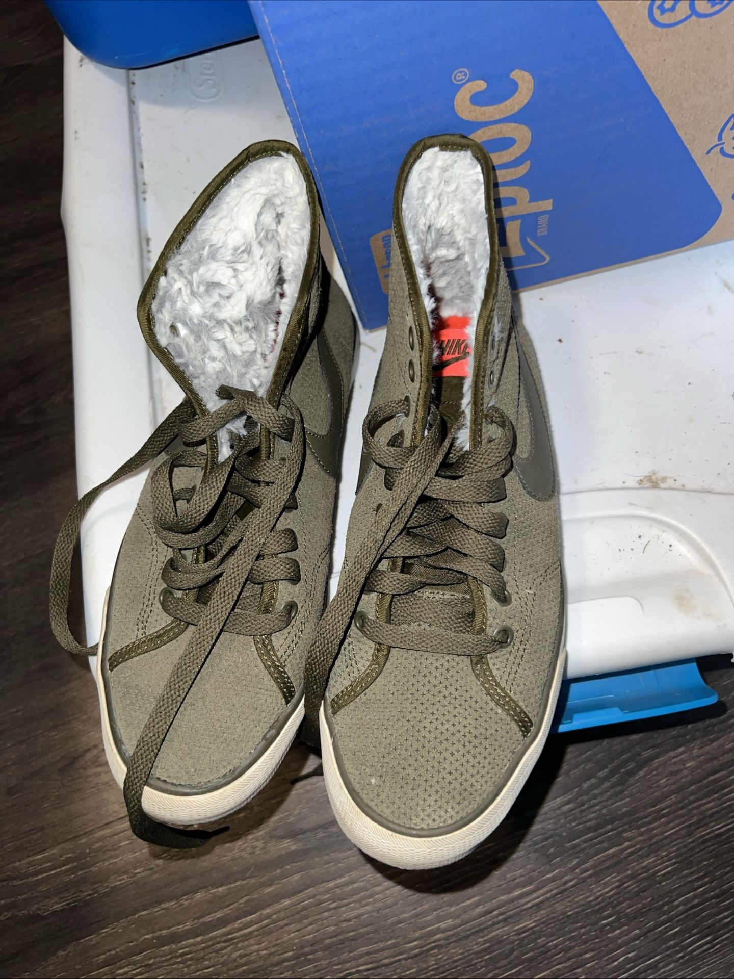 Women’s 2015 Nike Primo Court Mid Green Faux Fur Lined Sz 7.5