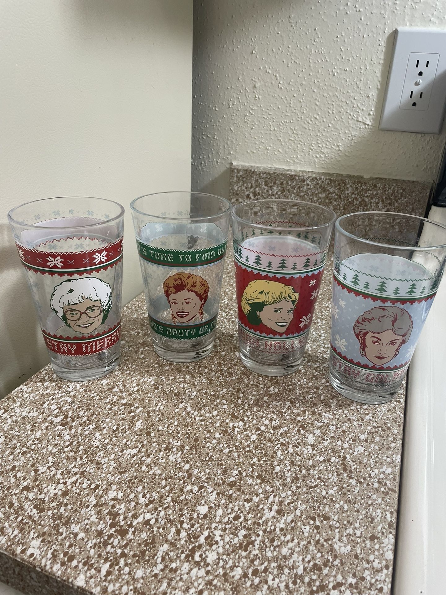 Set of 4 6 inch tall glasses The Golden Girls Christmas Theme