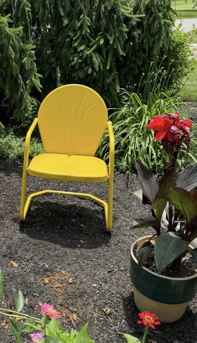 New Yellow 34-Inch Outdoor Retro Tulip Armchair (ONLY 1) — $60+ OFF RETAIL