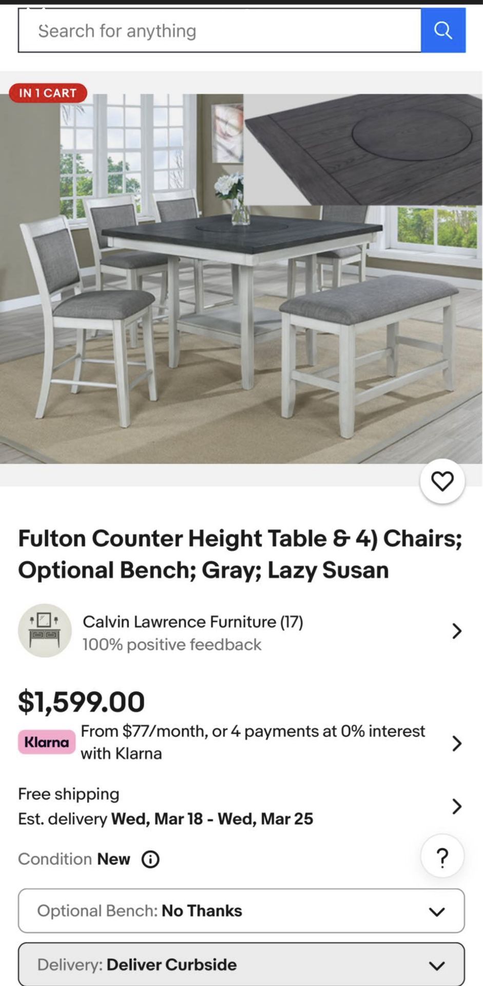 Grey Fulton counter height table w/ 4 chairs and 1 bench. Bought another 1, Need this one out asap!! Price negotiable hmu.