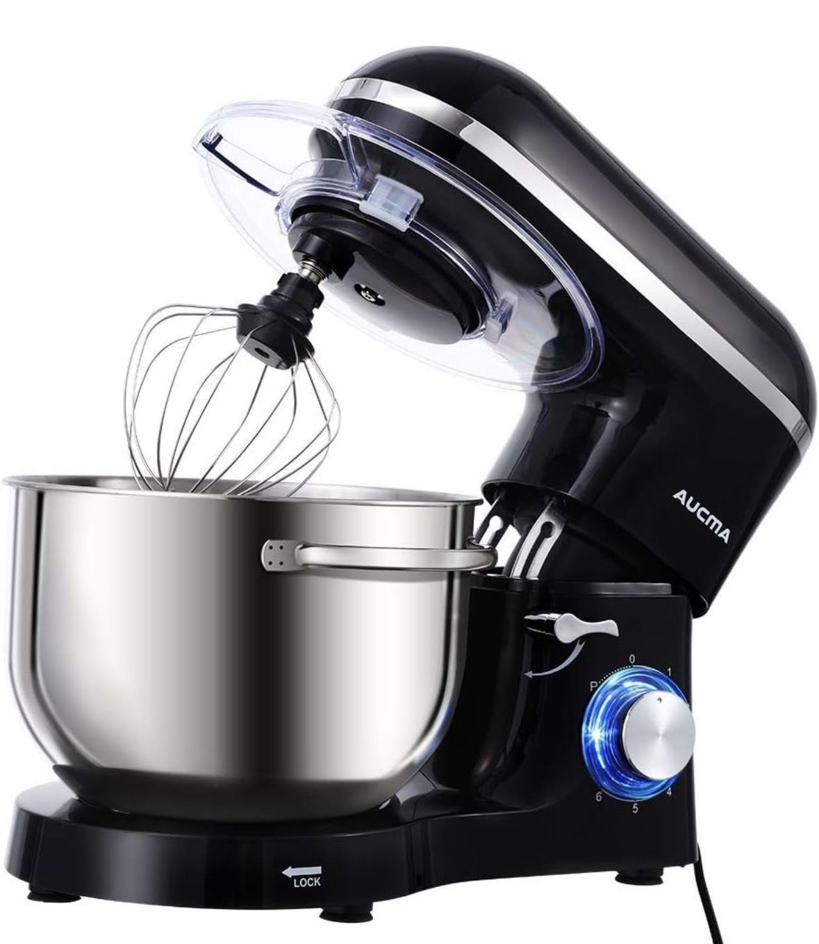 【POWERFUL MOTOR & VARIABLE SPEED CONTROL】 660W high performance pure copper motor and sturdy ABS housing; 6 optimized speeds with pulse function, access to multipurpose and a variety of recipes. More powerful motor but lower operation noise ≤76dB. 【6.5Qt LARGE CAPACITY BOWL WITH HANDLES】 6.5QT Stainless steel bowl can meet all your kitchen needs. The Stand Mixer is easy to use for making cakes, breads, cookies, pastry, muffins and waffle, and the dual handles are more convenient to hold. 【TILT-HEAD & OUTSIDE DESIGN】 The tilt-head design mixer allows access to install or uninstall bowl and accessories easily. The mixer has a stainless steel decoration belt and blue LED light as power indicator. Definitely one of the best appliance in your kitchen. 【MULTIPLE ATTACHMENT SET】 Aucma stand mixer comes with three mixing accessories: whisk, dough hook, mixing beater.The splash guard with access hatch helps add ingredients without making a mess.