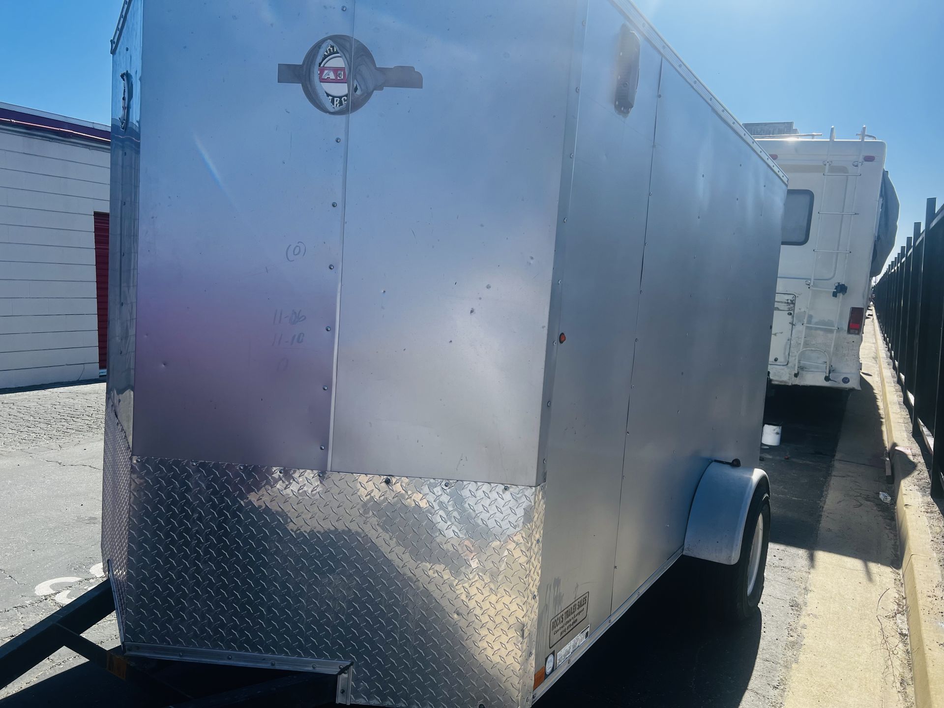 I have a 2014 V-nose enclosed trailer for sale. I have the pink slip in hand, and the trailer is in good working condition. While there are some minor scratches and a small oil stain on the interior wood from my ATV, it is an overall great trailer that should suit your needs well. Please let me know if you would like to make an offer or suggest a trade of equal value.