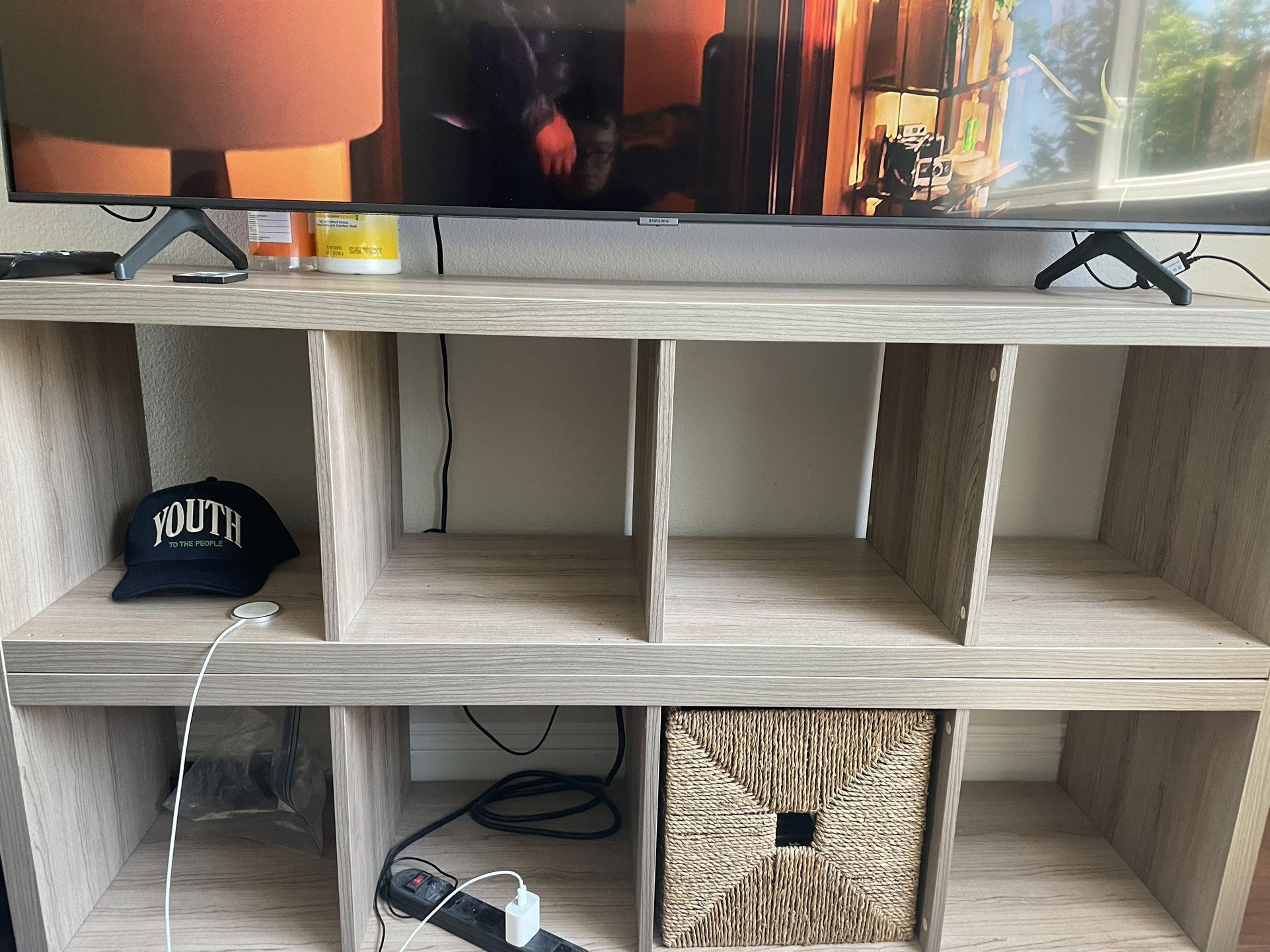 Like New Shelf. Great Condition! 1 Shelf for $65 or 2 Shelves for $120 Measurements Width: 16 3/8 " Depth: 15 3/8 " Height: 57 5/8 " Max load/shelf: 29 lb Max. load/wall cabinet: 66 lb 2 oz Can stack 2 on top and make it a TV stand which I do now. Before I put them in between Hang it on the wall or stand it on the floor – adapts to your needs. Smooth surfaces and rounded corners give a quality feel and you can personalize the unit with inserts and boxes. Product details The simple design with clean lines makes it flexible and easy to use at home. The smooth surfaces and the rounded edges give the shelving unit a well-thought-out and solid look. The shelves align perfectly with the frame to create a strong and uniform style. The flexible and adaptable construction makes it possible for you to enjoy for many years, even when your needs change or when you move. Whether you hang the shelving unit on the wall or place it on the floor, you can choose to position it horizontally or vertically. Display your favorite items on the open shelves or add inserts to create a personalized solution with closed storage.