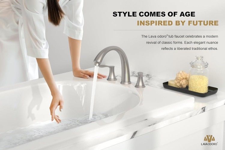 8 inch Widespread Roman Tub Faucet, Lava Odoro Brushed Nickel Tub Faucet with Valve, Solid Brass High Flow 3 Hole Tub Filler, 2 Handle Bathroom Faucet for Soaking Tub Brand new On Sale !! Very Good quality!! ***PRICE IS FIRM*** ***First Come First Serve*** *Check Size Details* Click on my profile listing to check more items. Our warehouse is located near Katy Legacy Stadium If you would like to come pick up DM me or call for address About this item 💎Premuim Brass Quality - The 3 hole roman tub faucet body is solid brass construction to resist corrosion and rust for durability, 100% lead free to ensure water safety for your family. The ceramic disc cartridges have been tested for over 600,000 uses, the 19.7 inches supply lines and hoses are kink-resistant and heat-resistant for leak-proof performance. 💎Elegant Finish - The brushed nickel roman bath tub faucet is brushed finish plated with multiple layers to resists water spots and fingerprint, requiring less cleaning. An elegant matte gray with visible brush lines, this finish eliminates reflection, creating a tonal experience that works in classic to modern environments. Match various decoration styles, whether it is modern, vintage or farmhouse style bathroom. 💎Precise Water Control - The 2 handle bathtub faucet allows to separately control hot and cold water temperature, water flow is strong and focus, the aerator creates soft bubble stream. With excellent High-Flow rate it can quickly fill a 50-gallon bathtub in just 10 minutes, reducing water heat loss. 💎Easy to Install- Designed to fit 3-hole 8-12 in. installations, this Lava Odoro deck mount tub faucet comes with rough-in valve and water lines. The straightforward installation ensures a quick and easy remodeling job.