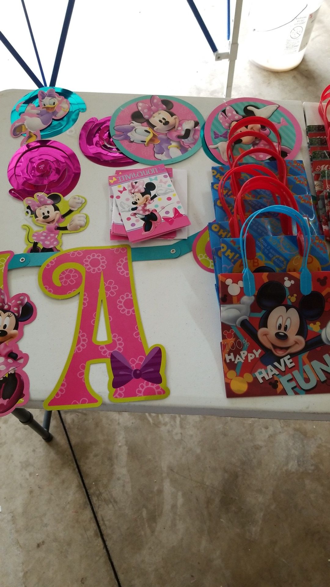 Birthday party supplies. I have birthday banner, swirlings, 12 cady bags 6 boys n 6 girls, paper plates, 7 invitations and birthday hats.