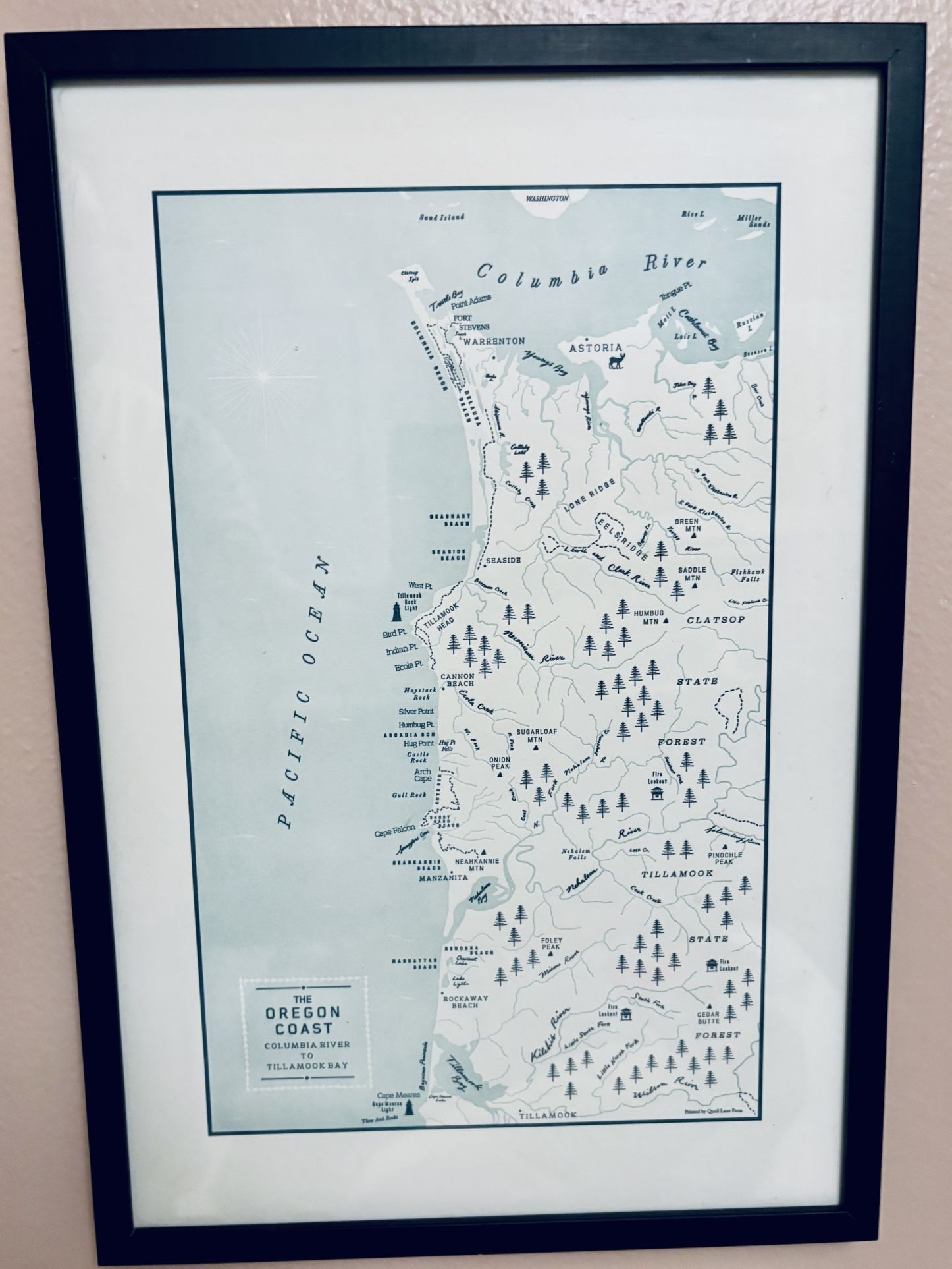 📍🗺️ Oregon Coast Framed Hand-drawn Antique Letterpress Map