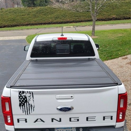 The BakFlip MX4 hard folding bedcover fits a 2019 – 2023 Ford Ranger 6’ bed. MSRP: $1249.99 Details: • High-density polymer-reinforced aluminum top panels are 22 percent stronger than the original MX4 • Precision-engineered aluminum side rails and frame • Striking textured black finish across all components • Folds against the cab for 100 percent bed access • Re-engineered prop rod clips for a secure hold • Premium rubber bumpers protect the cab when folded into the upright position • Re-engineered automatic latching panels offer improved security over the GEN 2 design • Comprehensive 3rd brake light visibility in all positions • Simple one-person installation • 12 percent quicker installation with all-new click-in design • Re-engineered perimeter seals and tight-fit clamps for superior weather protection • Extra-long, dual-action tailgate seal available on most applications • Integrated water drainage system • 400 lbs. weight capacity (evenly distributed) Without the cover, the bed of the Ranger measured 55 1/2" x 70" on the inside of the top rails. $600 cash.
