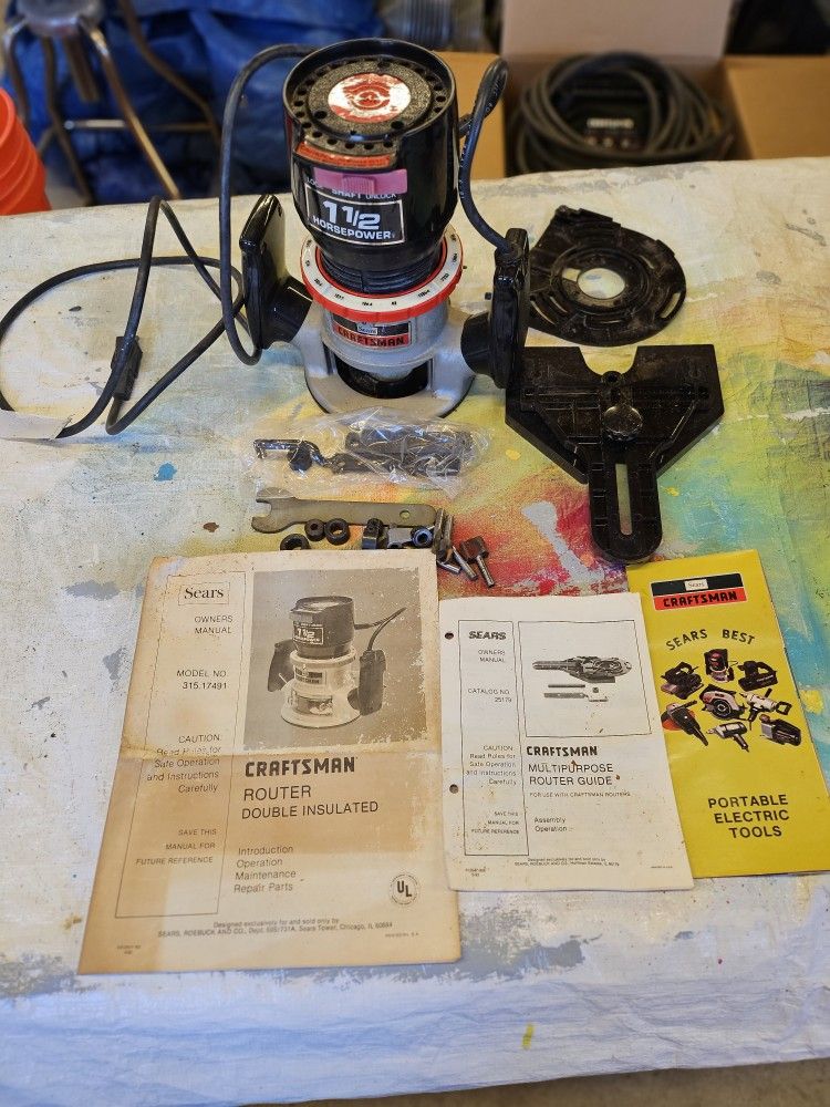 1 1/2 Horsepower router. Older, but works just fine. We'll taken care of. Cash in person only.