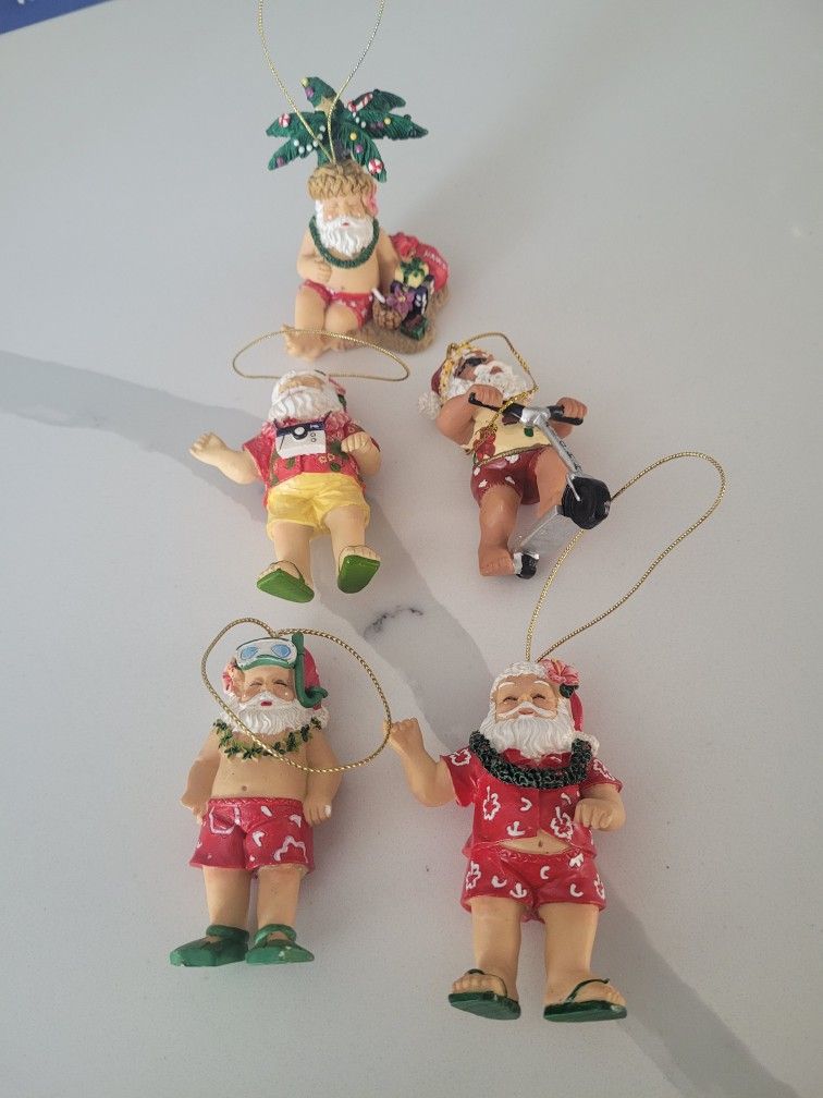 Five different Santa Hawaiian themed Christmas ornaments. Very cute! All five for $5