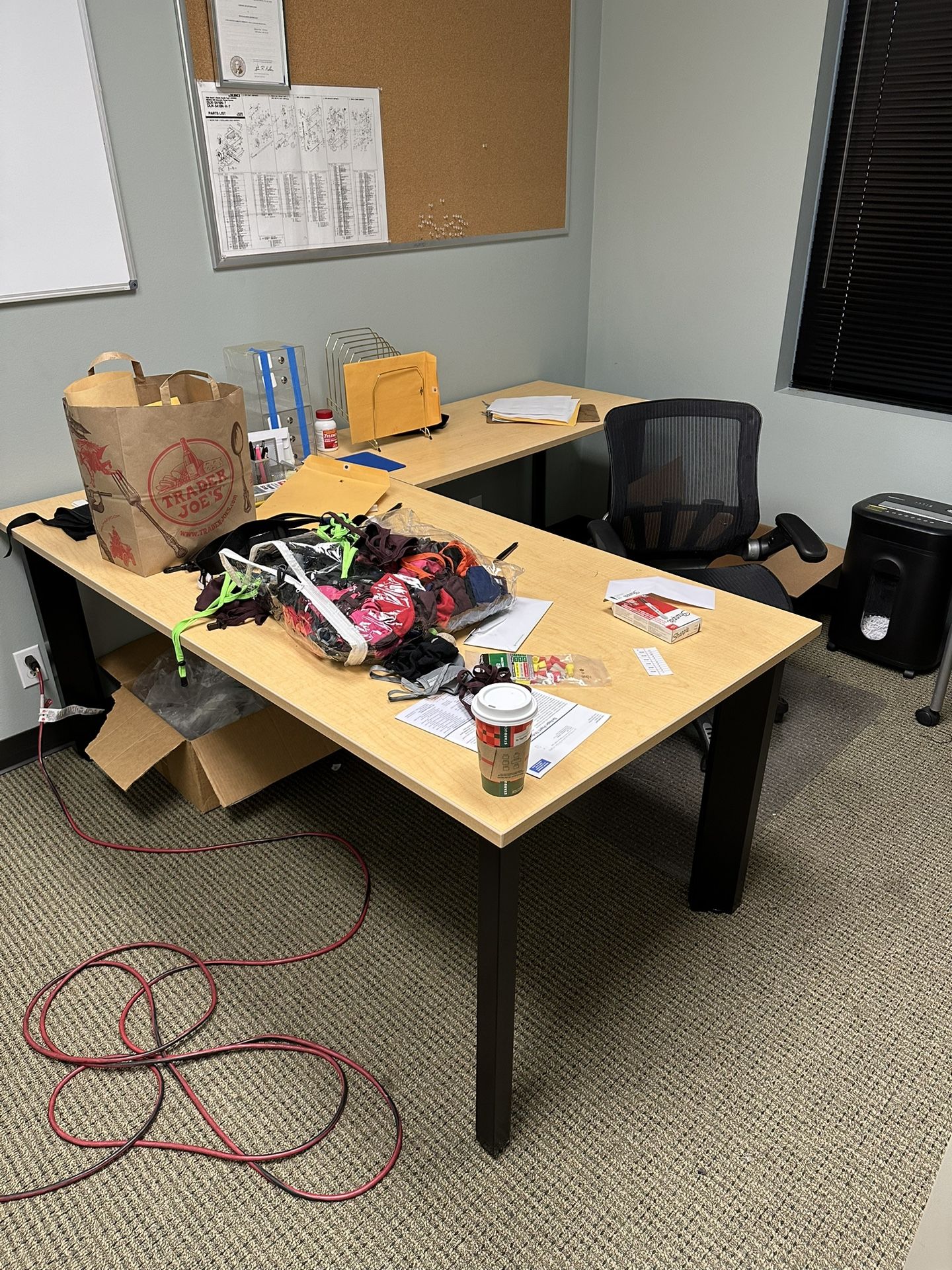 Two large filing cabinets, two square tables, two “L” shaped desks, two rectangle shaped desks. Workbench with tool rack, cubicle walls/desk. All in excellent condition. Other stuff too. Address: 12620 Interurban Ave S., Suite 110, Tukwila.