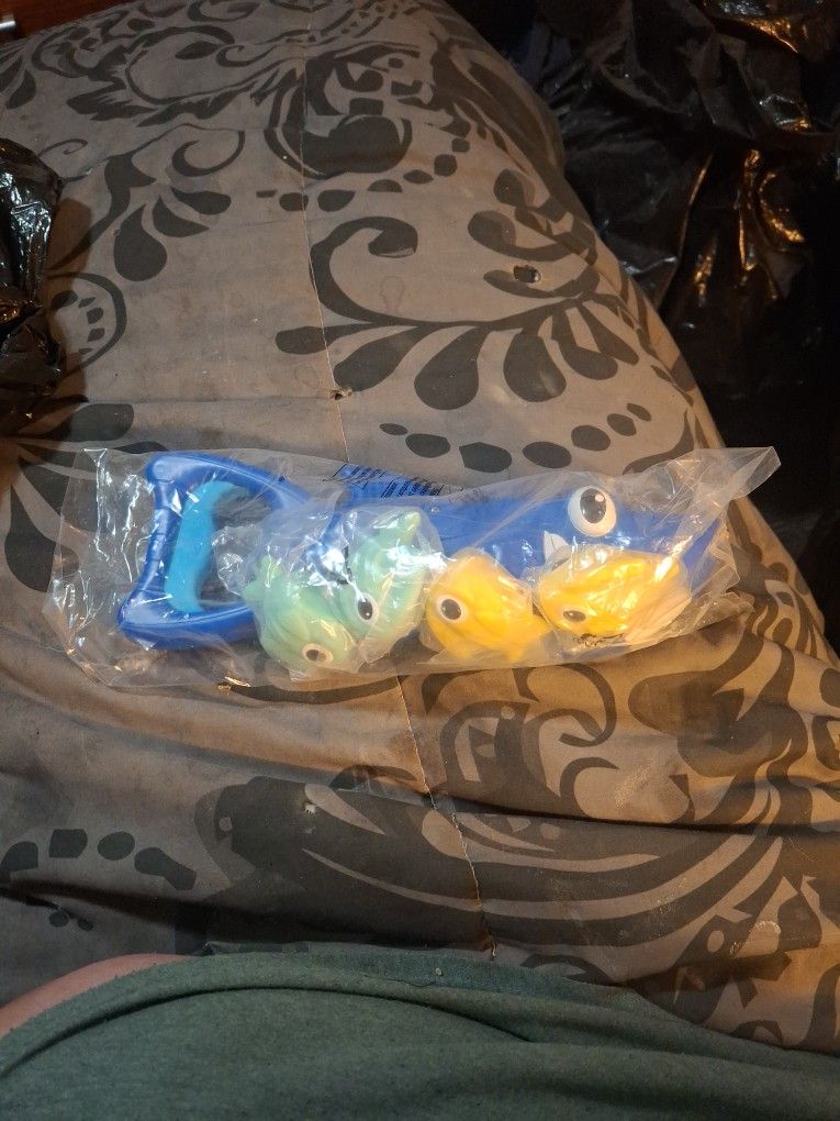 Shark that can eat babies. Can use in tub babies light up. Comes with 4 babies one shark. All brand new. In pkg Have several of them.
