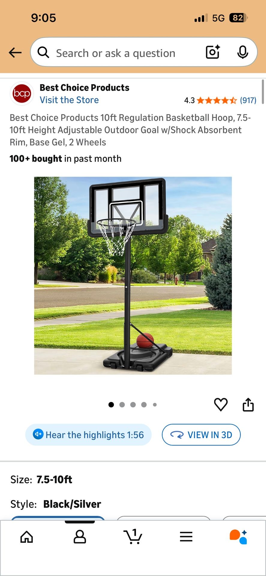 Brand new in-box , basketball hoop from Amazon. Black/ Silver. Was supposed to be a birthday gift for my 12-year-old and did not arrive on time, so they let me keep it for free and now I’m selling it because we bought another one.
