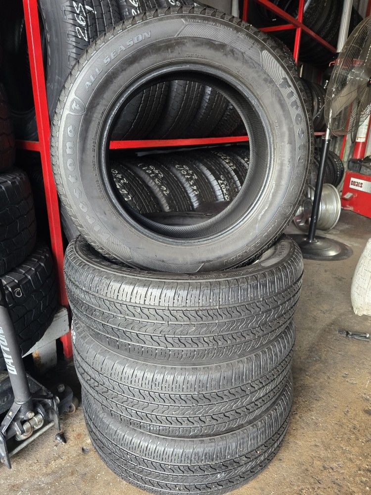 4 LLANTAS USADAS 235/65R18 FIRESTONE ALL SEASON NDY TIRE SHOP 1515 S ARMSTRONG AVE DENISON TX75020 ABIERTO LOS DOMINGOS MOUNTING AND BALANCING INCLUDED OR FOR CARRY OUT