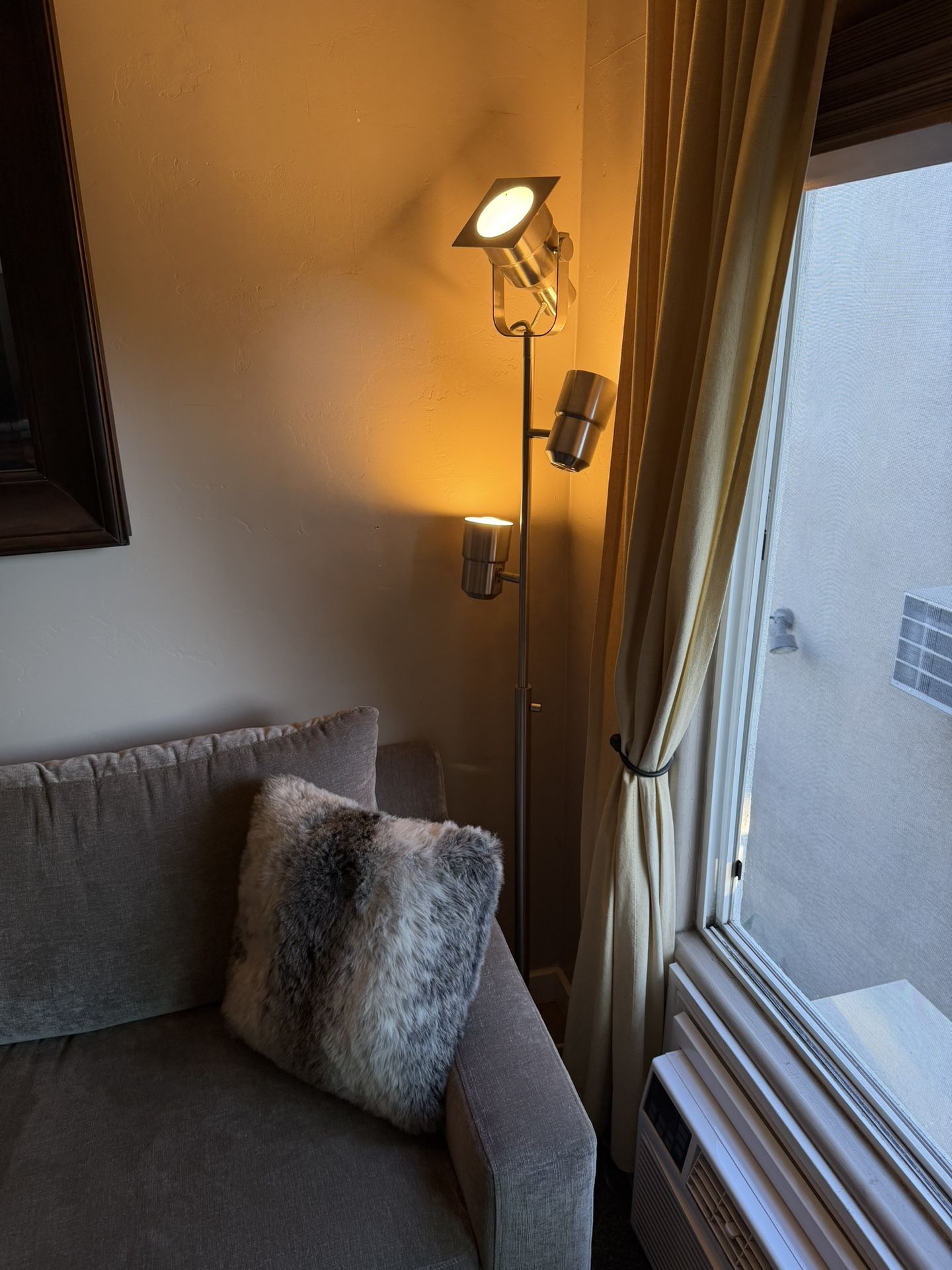Silver lamp in great condition. $60 OBO 70 inches tall.