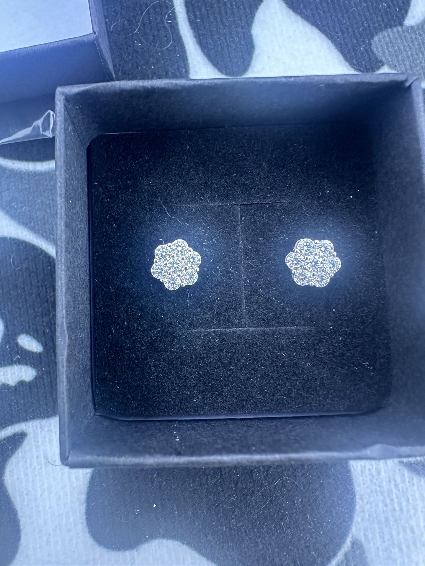 Brand new 925 silver moissanite earrings, i have other styles and sizes available the stones are vvs which means they are flawless, D-F color means the stones are white this allows them to reflect more shining colors, here I show some pictures of no lighting , natural sunlight, and a phone flash , these come with a box and of course the gia moissanite report which shows yu the quality of the stone feel free to ask any questions or concerns (passes diamond tester)