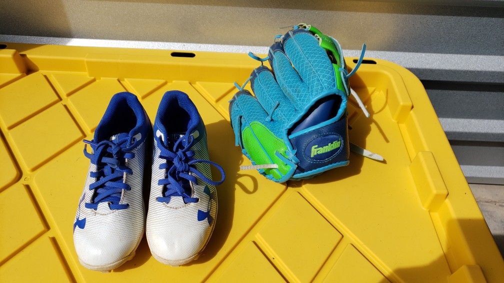 Under Armour cleats size-12c and baseball Glove $30..