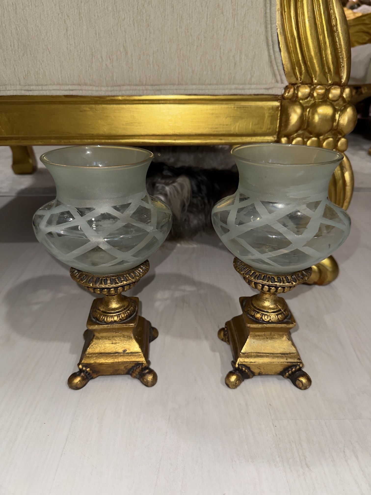 Vintage Eclectic Glass & Wood Hurricane Candle Holders