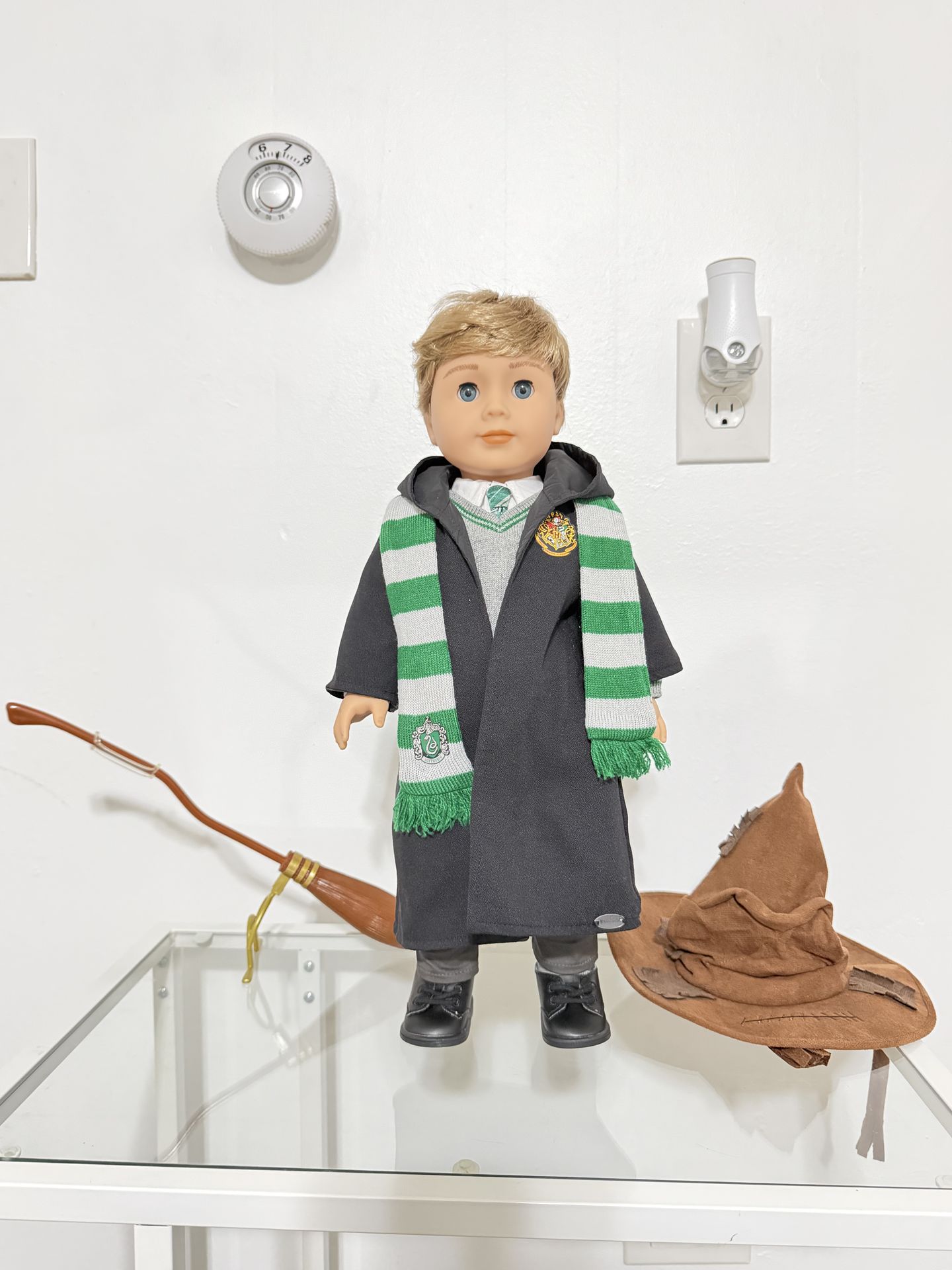 Truly Me Doll with Harry Potter Slytherin Uniform and Ravenclaw sweater, tie and scarf. Nimbus 2000 and sorting hat. Great Conditon. Smoke free home