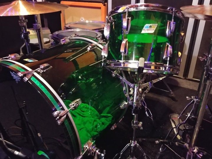 Not all drums are pictured. Kit is in great condition. Only played one gig with only 3 pieces. This is a 7 piece drum set. Massive 26x20 inch bass drum. Toms are 8 10 12 13 16 and 18 inch. The 13 inch tom is original from the 70's. The rest are vistalite spec shells with ludwig hardware and badges. Most have brand new heads on them. Make an offer!!