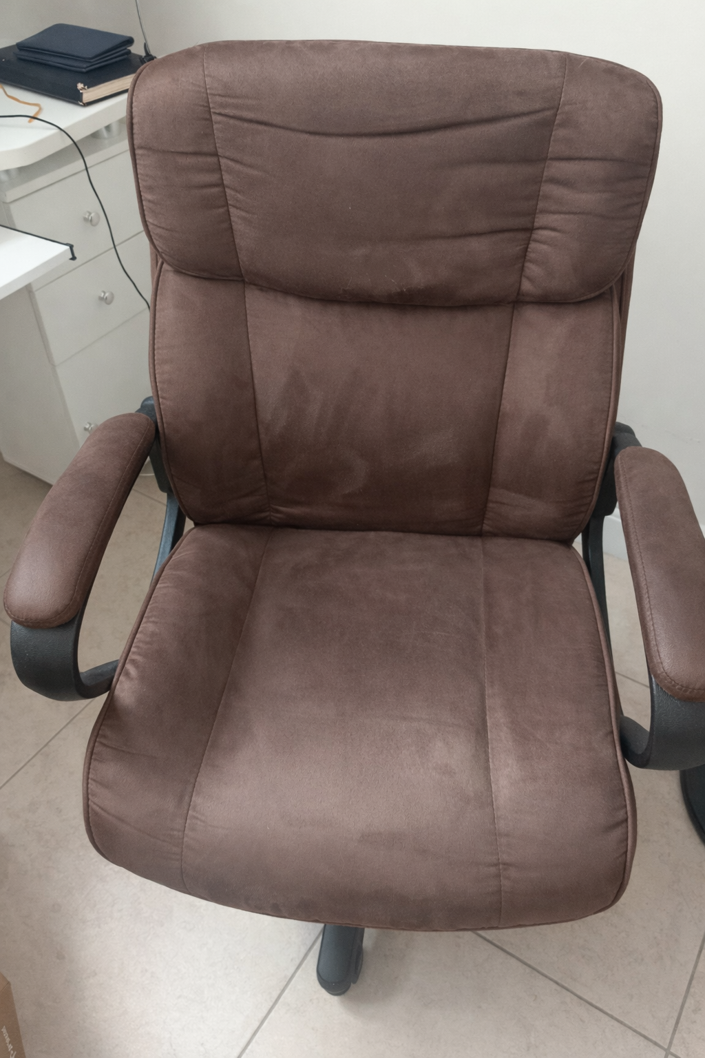 Easy to maintain, as new, brown microfiber faux chair.