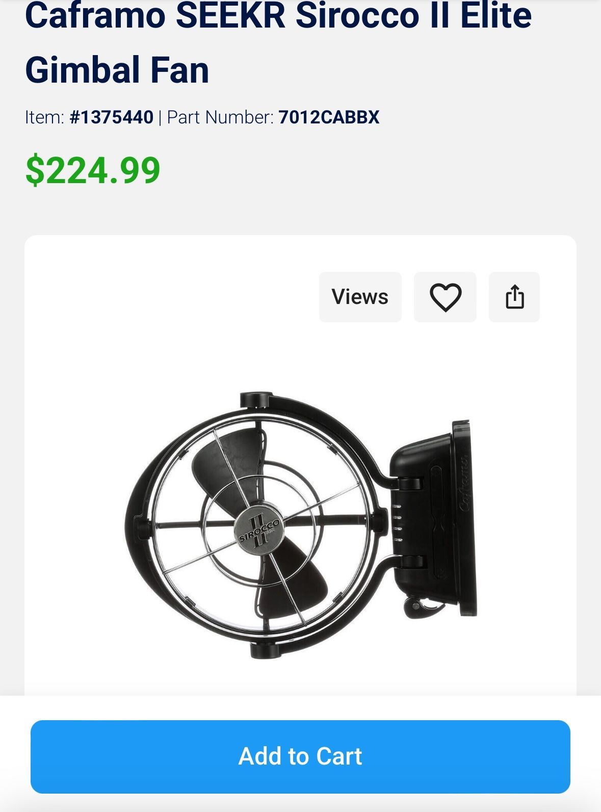 NEW IN BOX NEVER USED Caframo SEEKR Sirocco II Elite Gimbal Marine Fan Perfect for an Boat, RV, Bus, Skoolie, Van or other Conversion Vehicle
