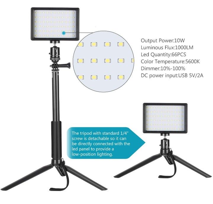 Two tripods, brand new in box never opened. Foldable & Extendable Tripod: With a minimum height of 8.85”/22.5cm, the mini tripod can be directly mounted to the panel light to offer an ultra-low position lighting. It is easy to set up and fold down. The height can be adjusted from 8.86” to 3.8’ (22.5cm to 1.16m) when using with the extension rod