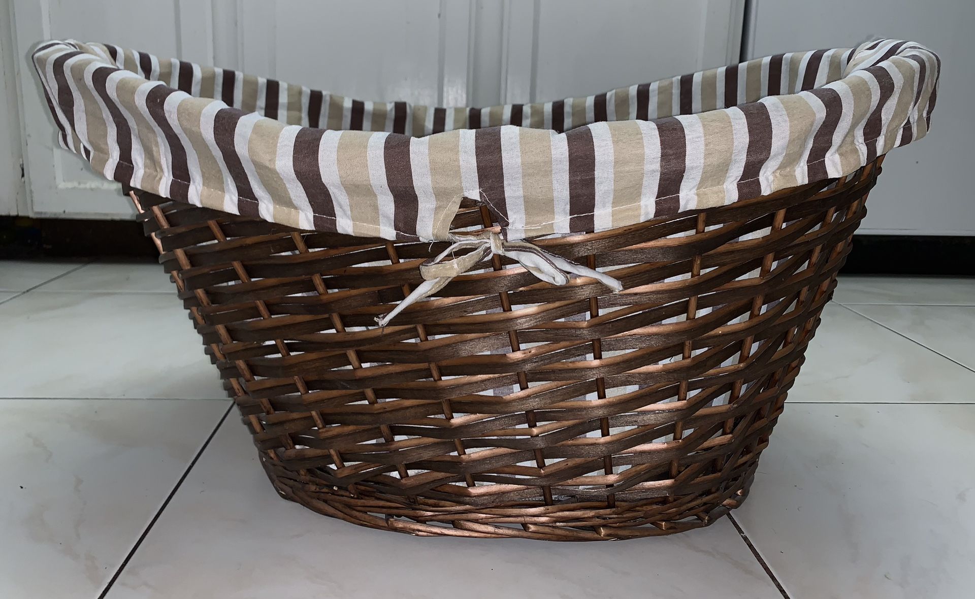 Extra large basket with removable liner. Measurements: 26 1/4” length 19 1/4” width 12” height (from top middle to bottom)