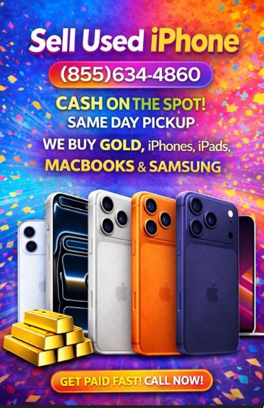 Turn your devices into cash the same day 💸 We buy iPhones, MacBook Pros, and iPads whether they’re new, used, or damaged. No hassle, no waiting. ⏱️ Fast pickup in 30 minutes to 1 hour 📍 Safe, local meetups 💵 Cash on the spot Just send us pictures + IMEI + condition, and we’ll get you a quote right away. Upgrade your space, clear out old tech, and get paid — all in one simple step. 📞 Call or text: (855) 643-4860