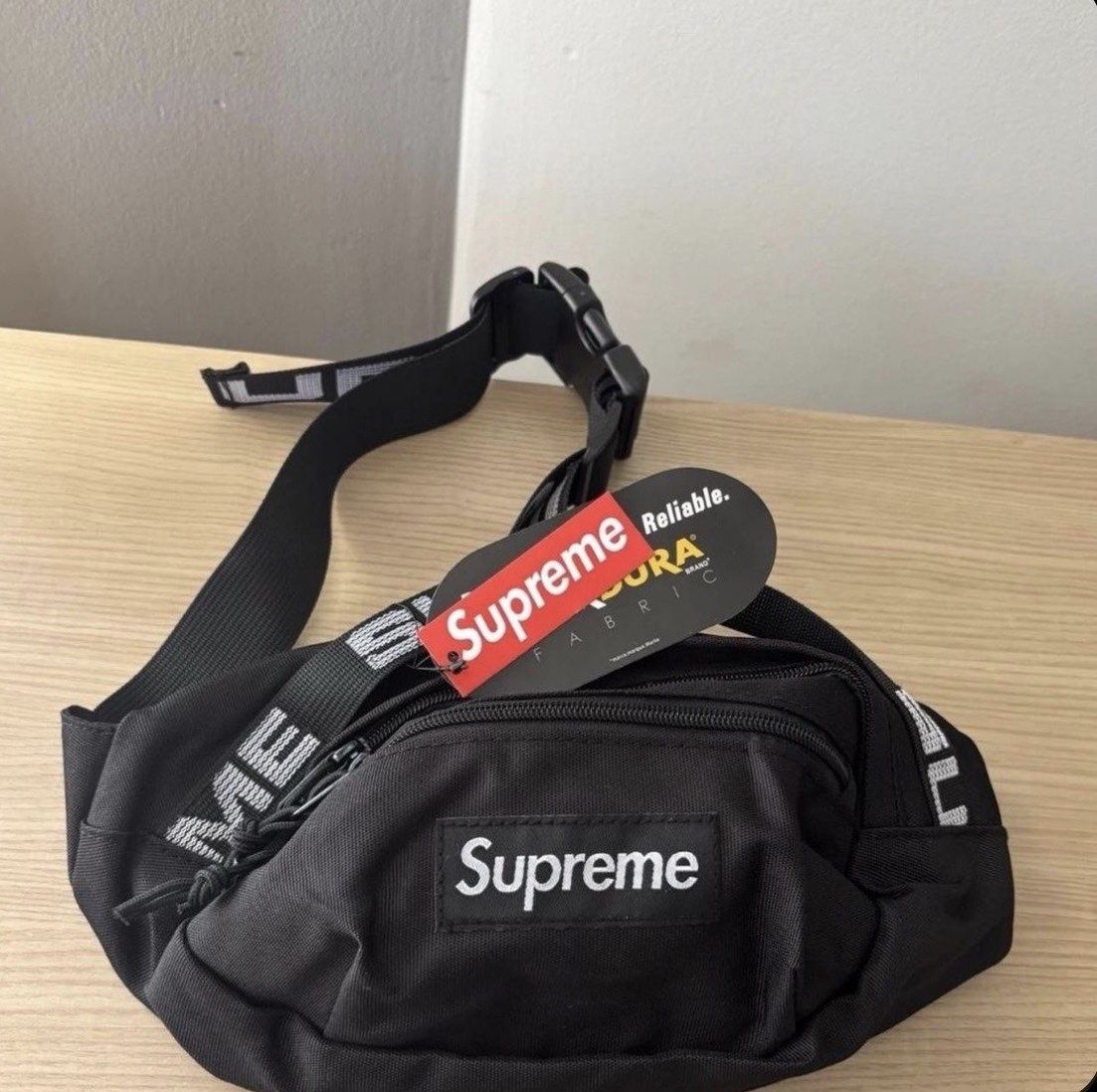 Black Supreme waist bag in great condition. Stylish and easy to wear crossbody or around the waist. Perfect for everyday use, festivals, or travel. Zippers work smoothly and the bag is clean with no issues. Ready to use, priced to sell. Message me if interested