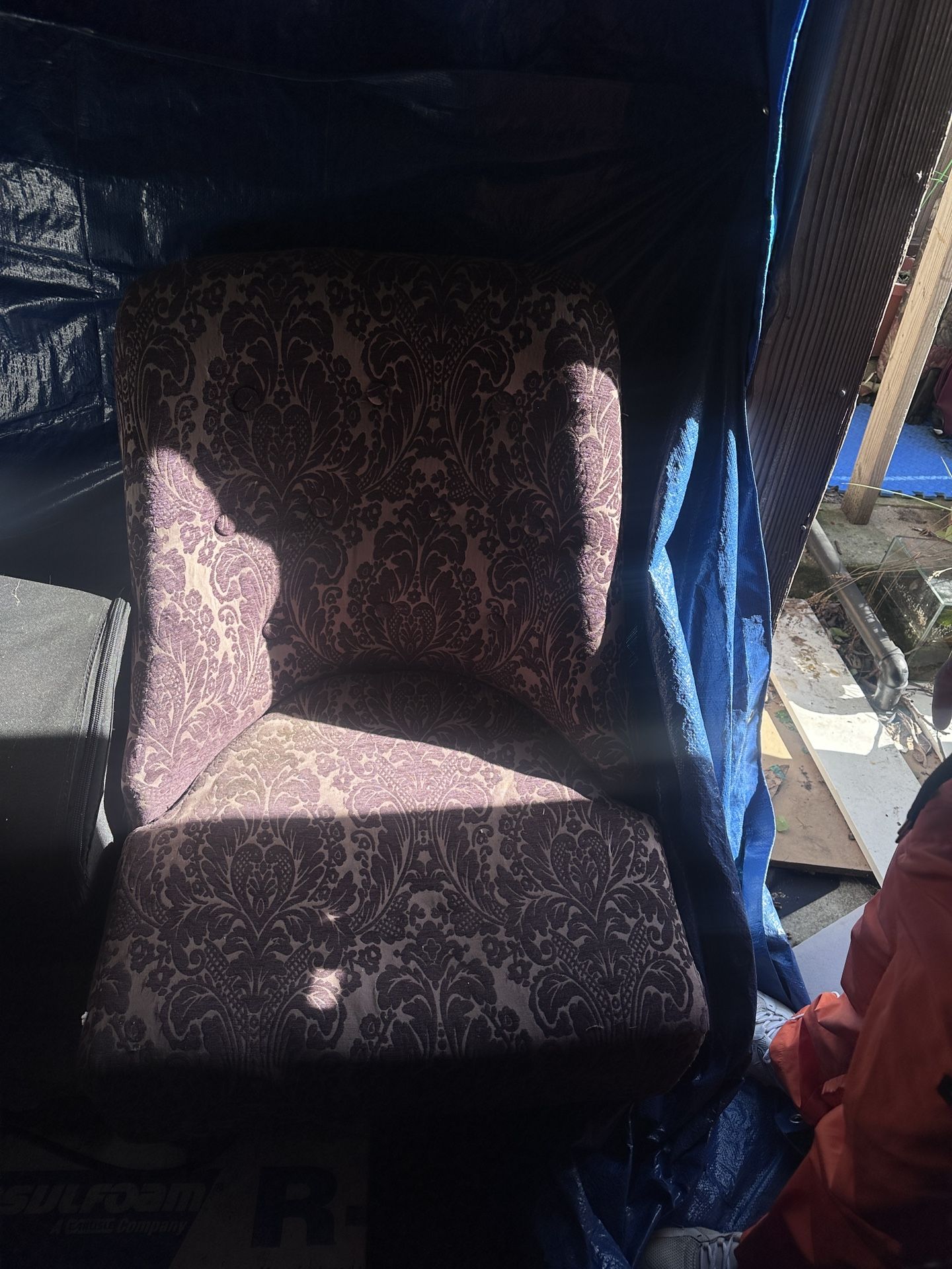 Pretty good condition, just needs a little vacuuming maybe spot cleaning and the under part to be stapled back up. I’ve had it for a long time and loved this chair just don’t have space for it anymore and I guess it’s time to see it go
