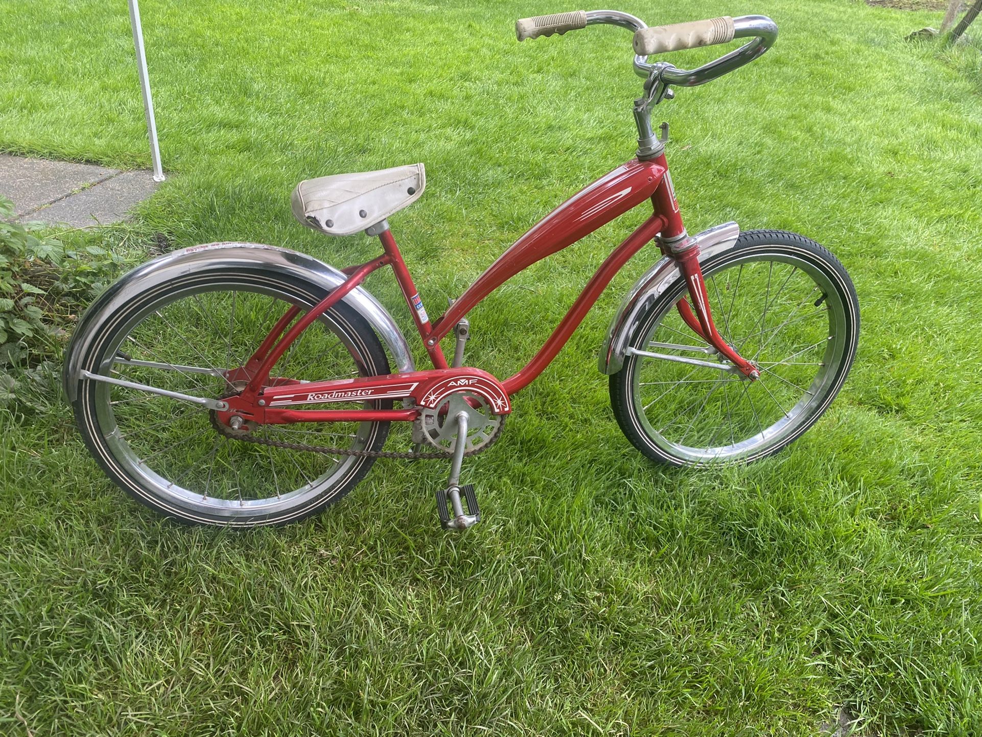 Vintage AMF Roadmaster bicycle. Collector bike. It rides and the tires hold air. No rust. Very clean, nice condition.