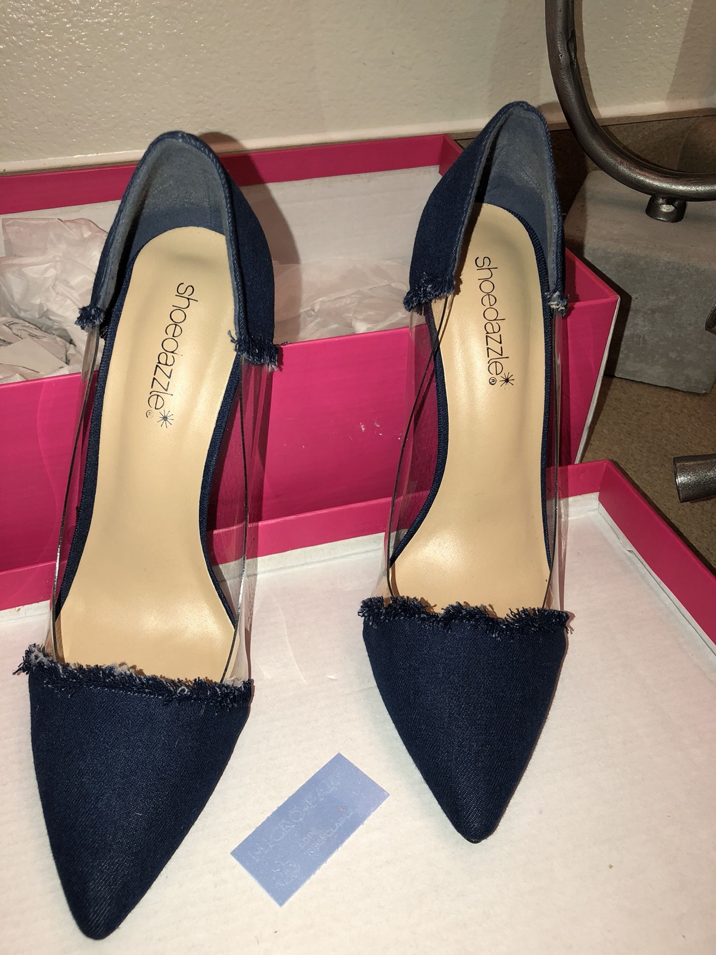 Blue jean plastic heels ! Size8