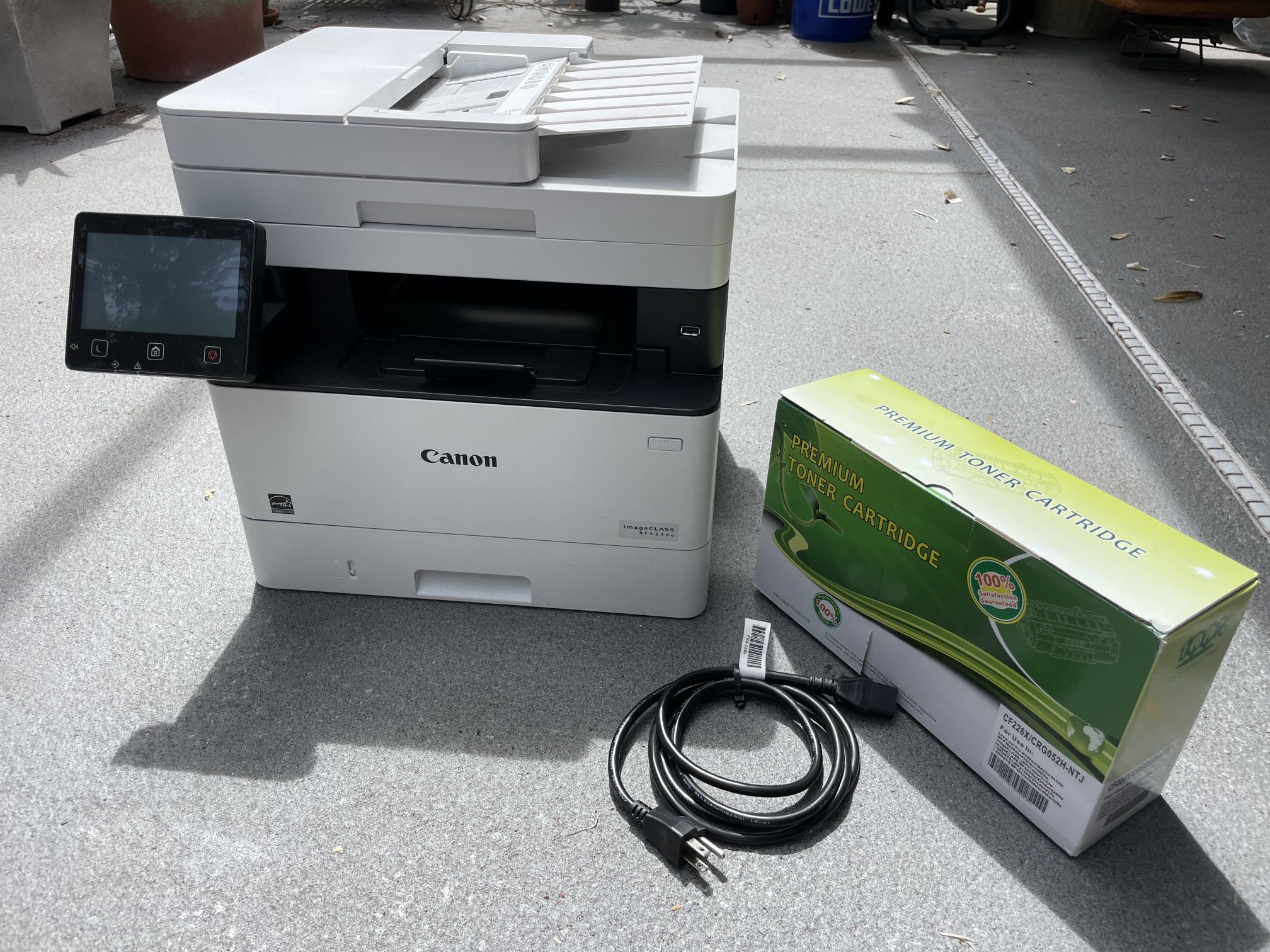 Like new Canon image CLASS MF424dw Monochrome Laser Printer with Scanner, Copier & Fax. Great for personal or office Brand Canon Connectivity Technology : Wi-Fi, USBA Printing Technology: Laser Includes: USBA cable USBA ports: 3. Color: white Model Name MF424dw 900-Sheet maximum paper capacity. One pass duplex scan Print up to 40 ppm Print up to 8-1/2" x 14" Toner: barely used toner & new cartridge All functional - no known issues To purchase contact Eric Serious buyer will have to pickup, or can meet in a public place. (Cash only, I will not entertain a PayPal or Ship To)