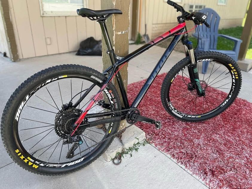 VITUS Sentier VRX hardtail. Used as a competitive XC bike. 2019 Frame Size L Rockshox Recon Solo Air Boost 120mm / Air/Oil compression/ rebound dampening. No lock out. Taper Cane Creek Head set. ZS44/28.6 upper & ZS56/40 lower to suit 1-1/8" upper tapered to 1.5" lower headtube TEKTRO Hydraulic Disc Brake Set Single Piston Caliper with 160mm Rotors Spank Spoon 800 / 40mm Rize Bars SPANK SPLIT 31.8 STEM MAVIC CrossRock XC Rims 27.5 / S6000 aluminum 19mm internal rim width Transfer System 2 hubs (SRAM and Shimano compatible) Compatible with six-bolt disc brake rotor 15mm front thru-axle , Boost 148 Rear Bladed Steel spokes UST tubeless system BOX Components / BOX THREE P9 Groupset. Clutch Derailer 11-50 Cassette. SRAM STYLO DUB CRANKSET Scram Eagle 30T X-SYNC 2 chainring 175mm, 6000 series forged aluminum arms for reduced weight. SRAM DUB™ spindle for use with the DUB™ bottom bracket. Tires Maxxis DISSECTOR 27.5 Front WT EXO TR 3C Maxxis RECON 27.5 Rear 3C Max Terra ODI Rogue Grips. Carbon Fiber Seat Post WTB Volt Pro Saddle - Chromoly Pedals NOT included. Rider Size 5’10 - 6’1”. 180/210 lbs. NOTE! This Bike is disassembled and In the shipping Box. I will not ship it. I decided not to ship it to the country I was traveling to. It is only available for pick up.. This MTN Bike saw three seasons of cross country competition in Colorado. So it has minor scratches on the cranks and forks. Otherwise the bikes in good condition. Do your research first. The price. $425 OBO Available for pick up only.