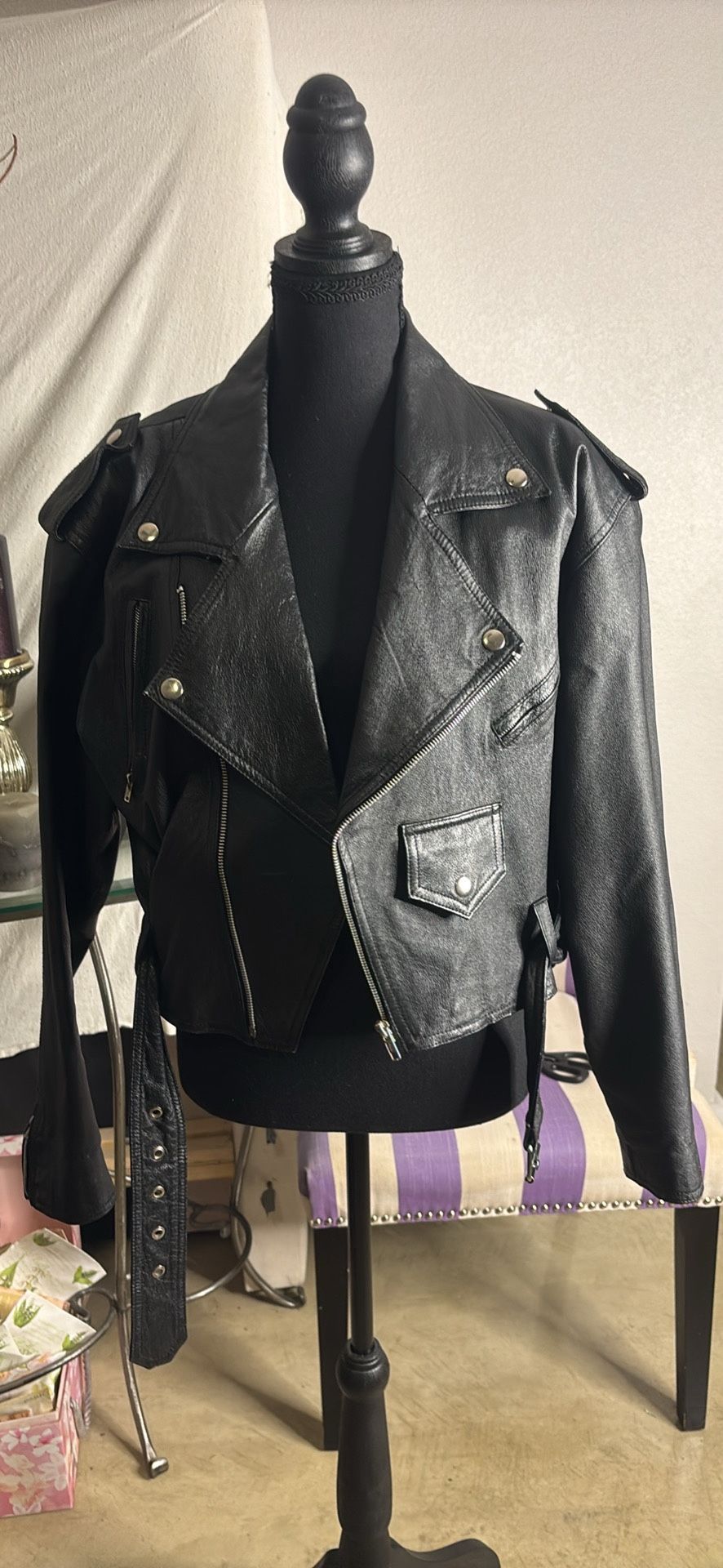 Black leather biker jacket size med to large