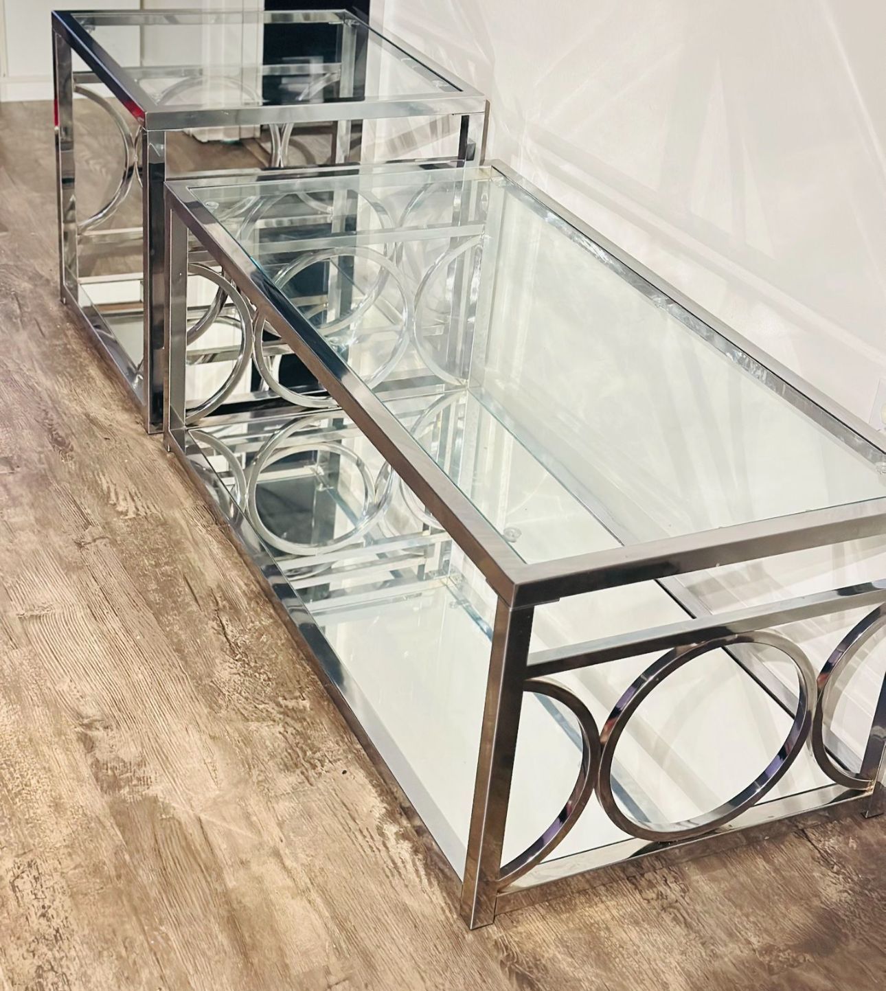 3 pieces of coffee tables, one coffee table with two side tables. I bought them a month ago, so I'm selling them because I'm moving. They are in perfect condition, like new ones, with no scratches or marks.