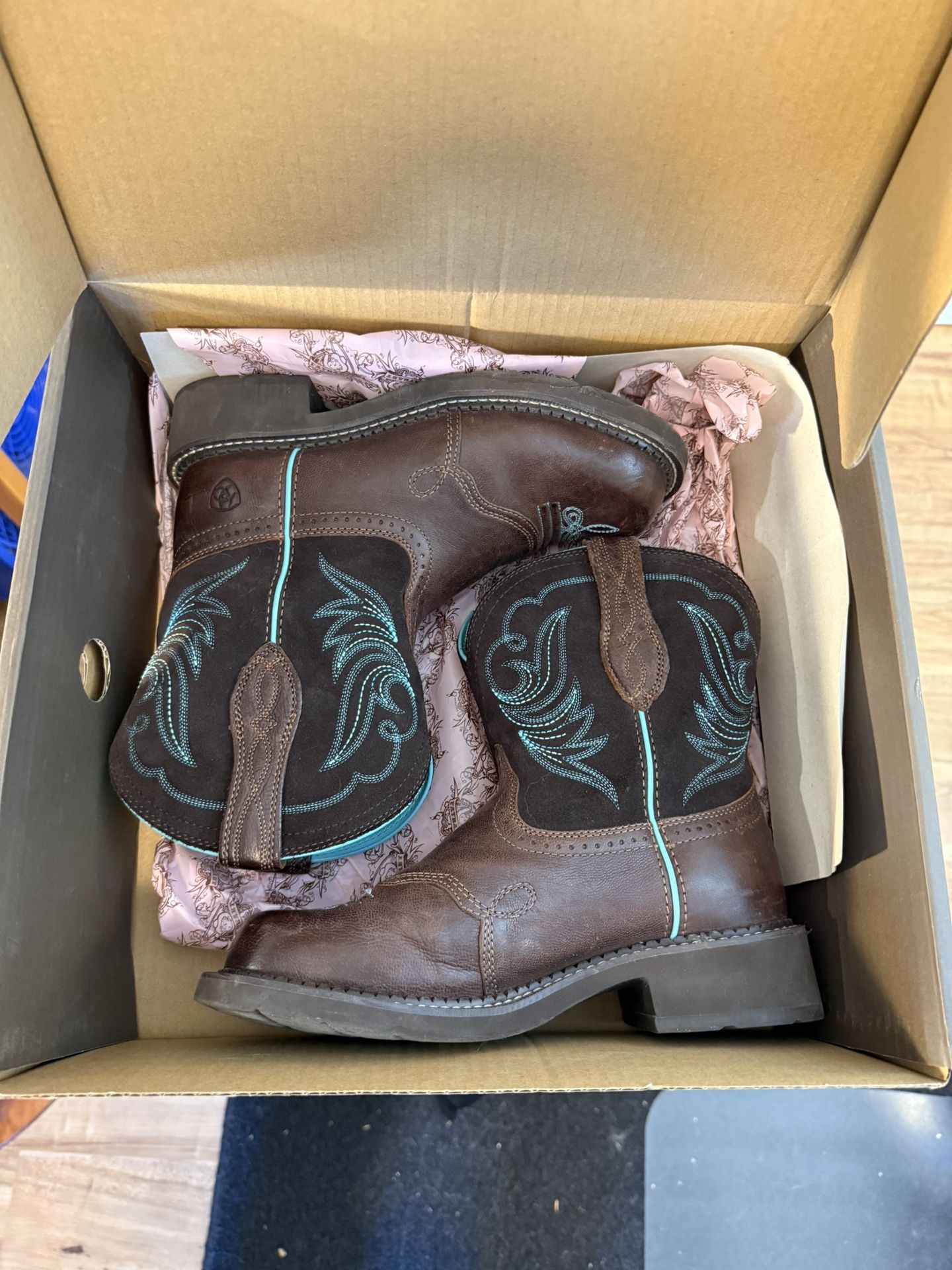 Like new Ariat Fatbaby Heritage Dapper Western Boot. Size 8.5/39. Super cute and only worn once. I didn’t like the fit.