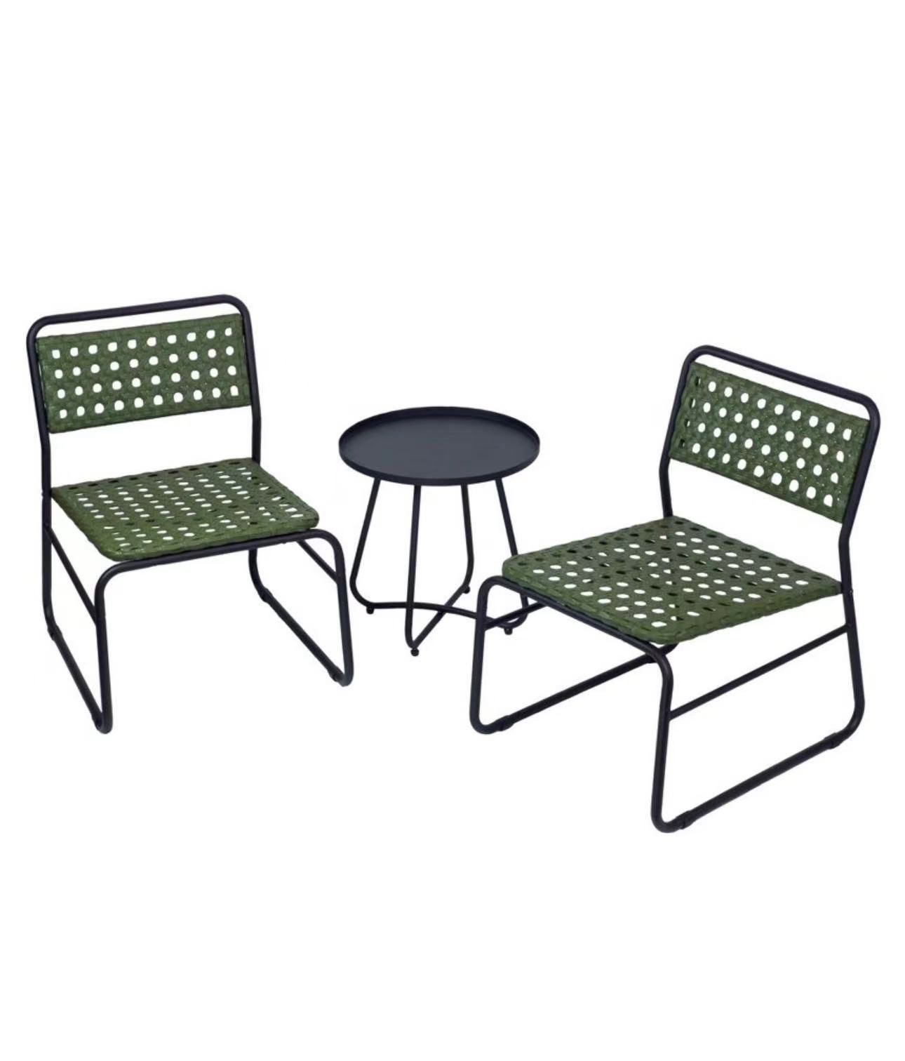 Kinger Home 3-Piece Outdoor Patio Bistro Table and Chairs Set of 2, Rattan Wicker Cast Aluminum Patio Furniture, Green