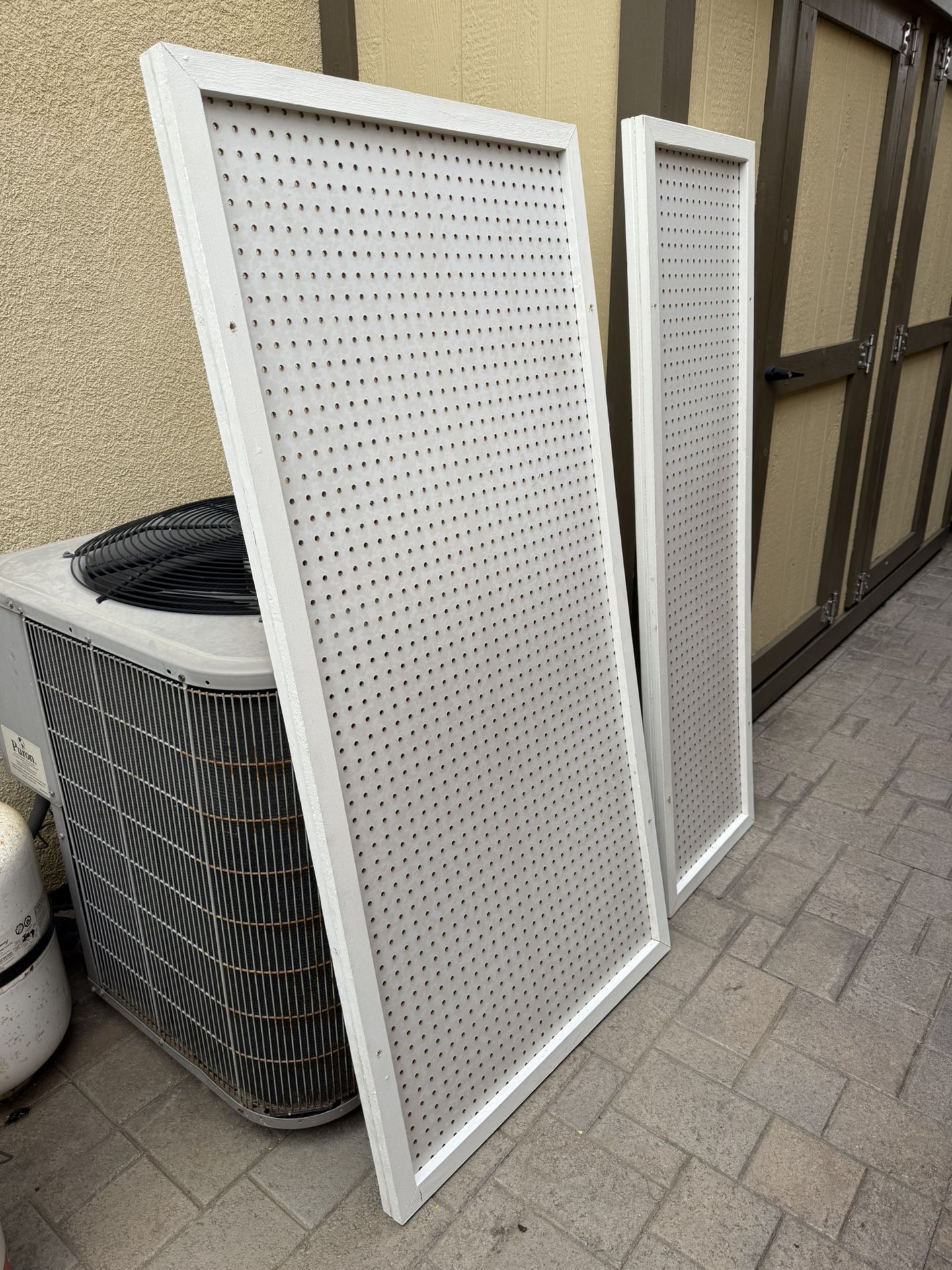 Two peg boards available. One measures about 5’x36” and other one is 5’X24”. Painted white. (Near Vons on Carmel Mtn Rd in 92130)