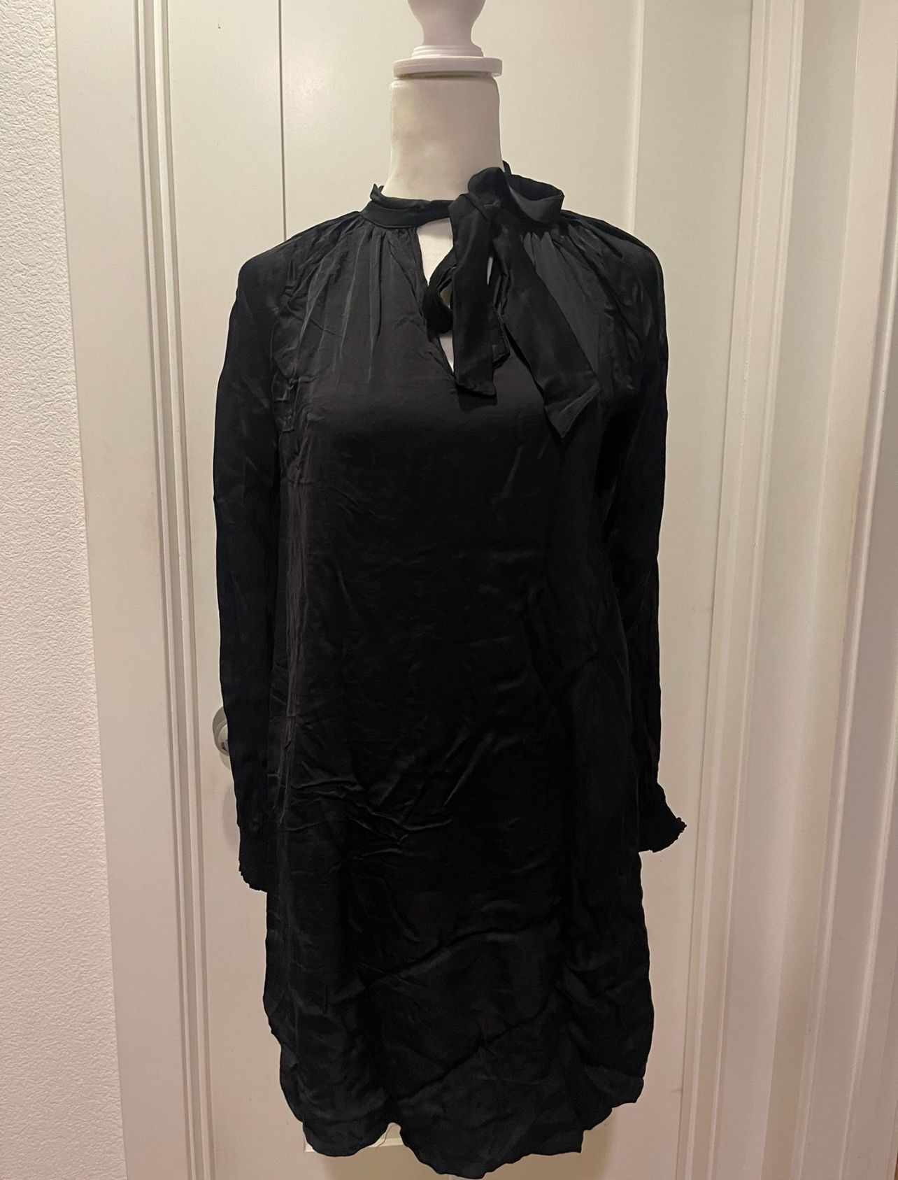 ONLY WORN ONCE super soft satin like material Stretchy cuffs Adjustable collar tie Size M *Please excuse the wrinkles. I did a massive closet clean out and will iron/steam pieces upon purchase* *If you’re interested in multiple items on my page, please message me for discounts and bundle shipping*