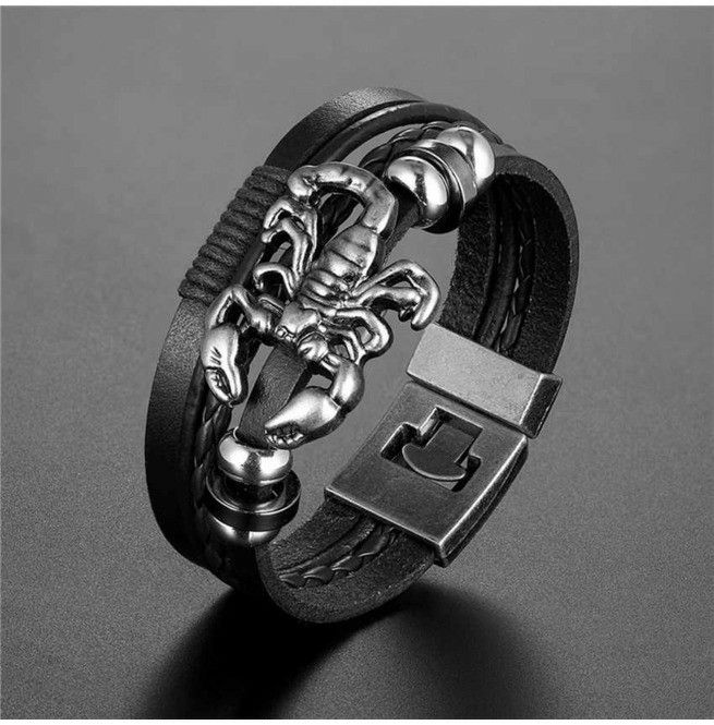 The Egyptians see the scorpion as a protective charm. Its sting can bring both healing and death since it is linked with the goddess Selket. The simplicity of this layered scorpion leather bracelet suit is its appeal. The drawstring wrap bracelets are extremely attractive and can be used dress up or down, and they are nicely constructed and go with almost everything. Jewelry maintenance should be done softly, avoiding collisions and friction. Avoid contact with chemicals, cosmetics, wine, acids, alkalis, and other similar substances. Remove it before bathing or swimming. Please use a clean, gentle cloth to clean your jewelry. Feature: Condition: Brand New Gender: Unisex Clasp Type: Easy Hook Shape\pattern: Scorpio Chain Type: Rope Chain Color: Antique Silver/Black Material: Alloy, Genuine Leather Bracelet Length: 21cm Width: About 25mm Weight: 27g Package includes: One Bracelet