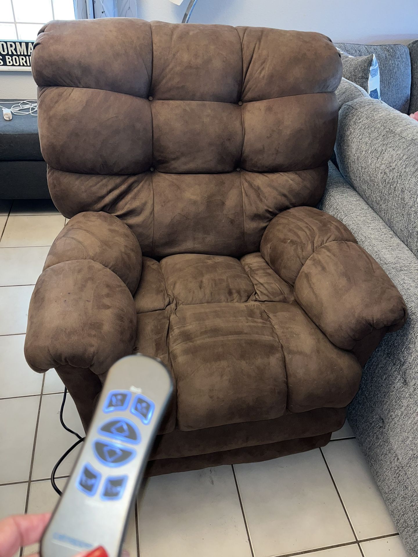 Electric recliner about a year old nothing wrong with it just normal wear and tear. Have no place for it in the house.
