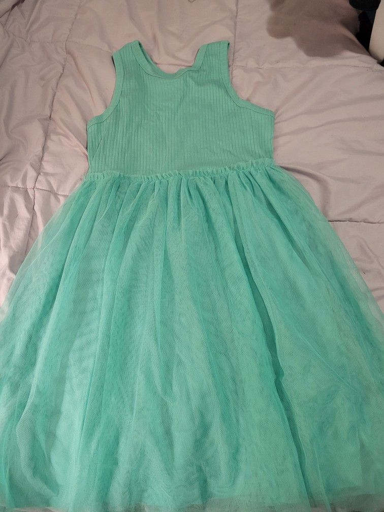 Girl's size 10/12 turquoise turu dress. Only worn 1 time, super cute and like brand new.