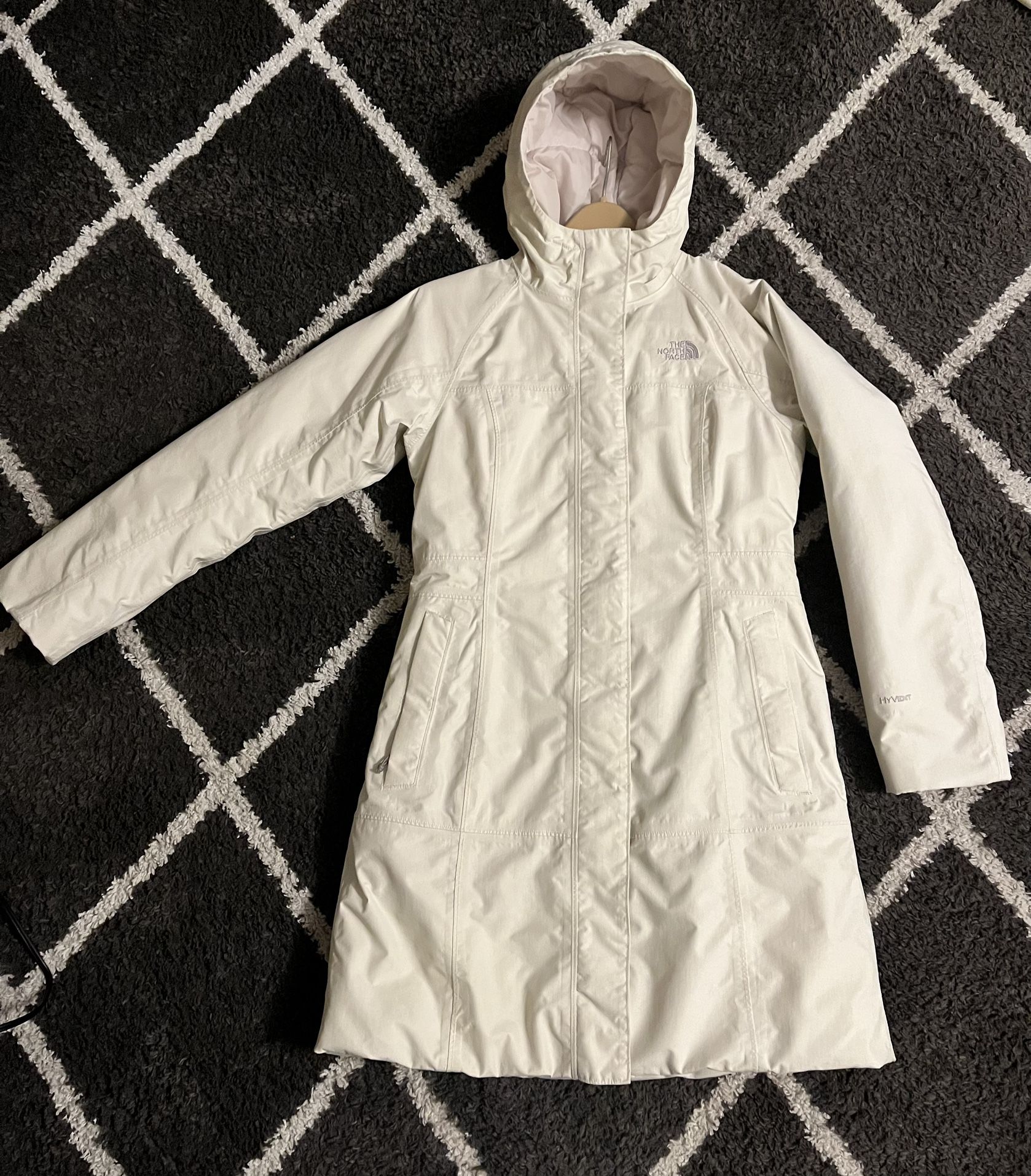 PRICE DROP! Now $100 or make me offer! Never worn, women’s North Face Hyvent parka called ‘Julie’ in moonlight ivory. This jacket goes down to the mid thigh, has an attached hood and is really warm! Outer shell is 100% nylon, interior is 100% polyester. Retail Value: $260 Sale Price: $125 obo All sales are final. Please let me know if you have any questions or would like additional photos. Accepted payments are: Venmo, Cash App, Zelle, or Cash upon delivery. Thanks for looking!